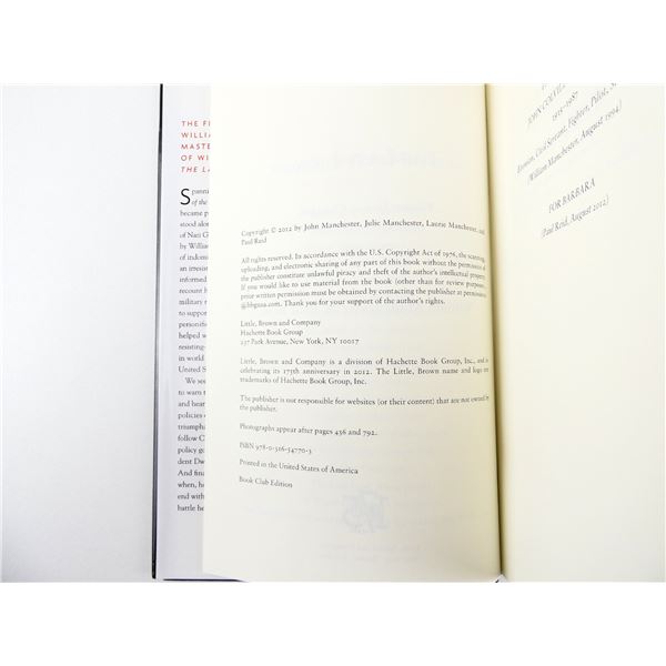 (1) BY WILLIAM MANCHESTER & PAUL REID, HARD COVER WITH DUST COVER, ISBN: 978-0-316-54770-3. SEE PHOTOS.