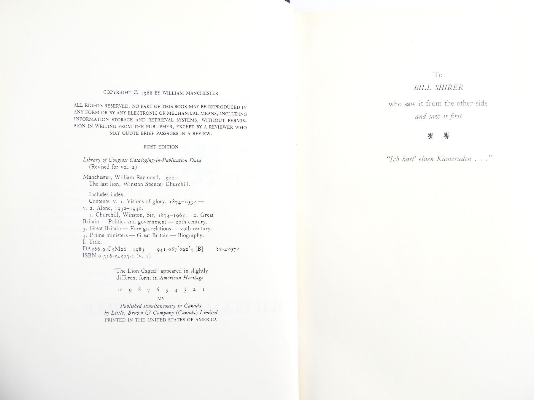 Lot 34139 "THE LAST LION, WINSTON SPENCER CHURCHILL, ALONE 1932-1940" BOOK