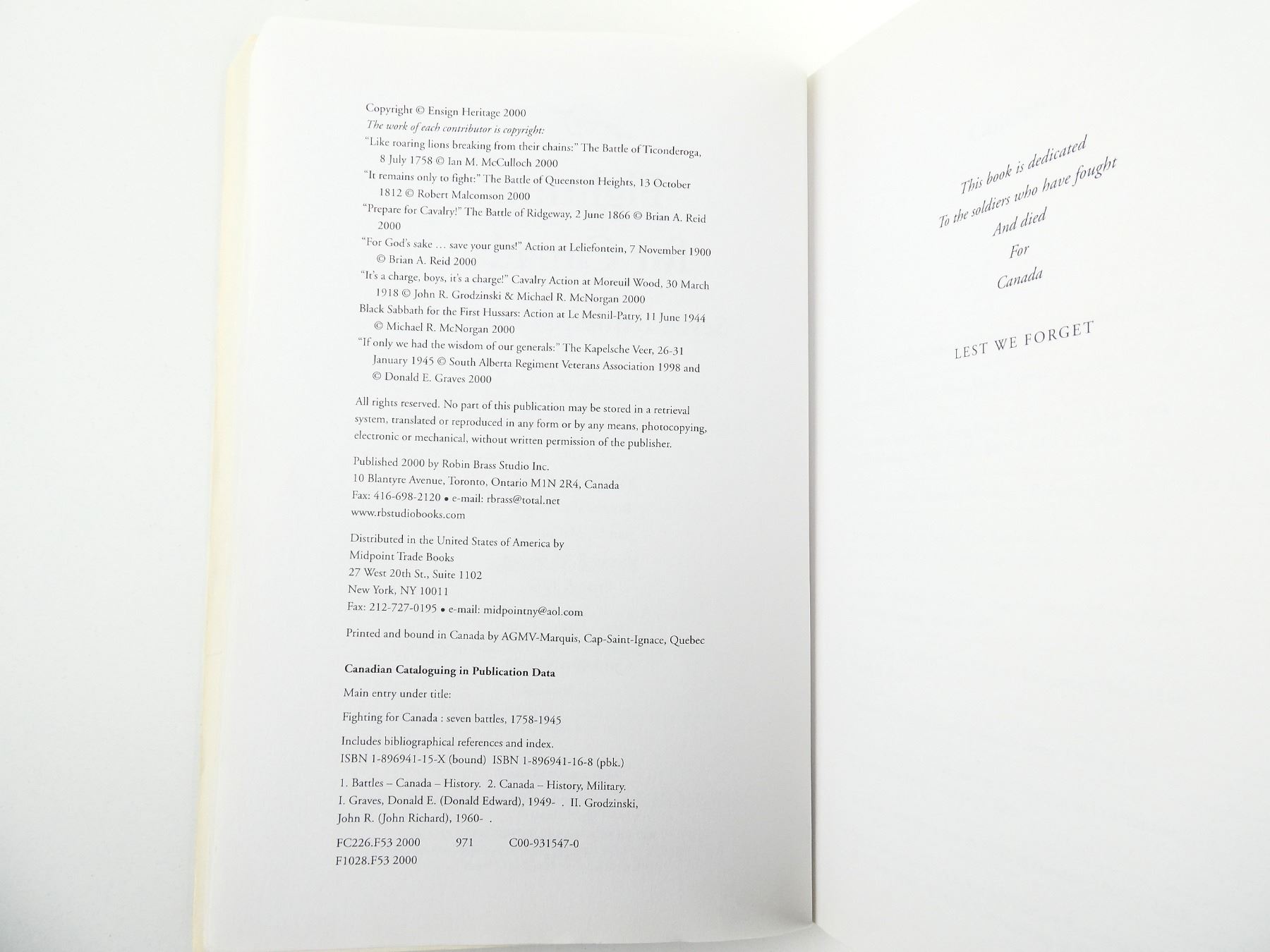 Lot 34140 "FIGHTING FOR CANADA, SEVEN BATTLES, 1758-1945" BOOK