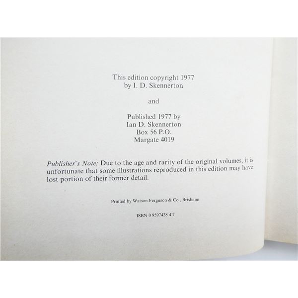 HARD COVERS WITH DUST COVERS, LOT INCLUDES; (1) "LIST OF CHANGES IN BRITISH WAR MATERIAL IN RELATION TO EDGED WEAPONS, FIREARMS AND ASSOCIATED AMMUNITION AND ACCOUTREMENTS, VOLUME I 1860-1886" BOOK BY IAN D. SKENNERTON, ISBN: 0-9597438-3-9 & (1) "LIST OF CHANGES IN BRITISH WAR MATERIAL IN RELATION TO EDGED WEAPONS, FIREARMS AND ASSOCIATED AMMUNITION AND ACCOUTREMENTS, VOLUME II 1886-1900" BOOK BY IAN D. SKENNERTON, ISBN: 0-9597438-4-7. SEE PHOTOS.