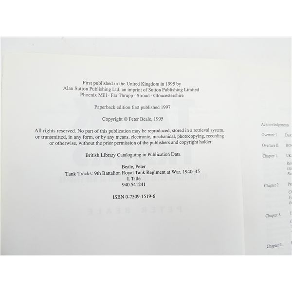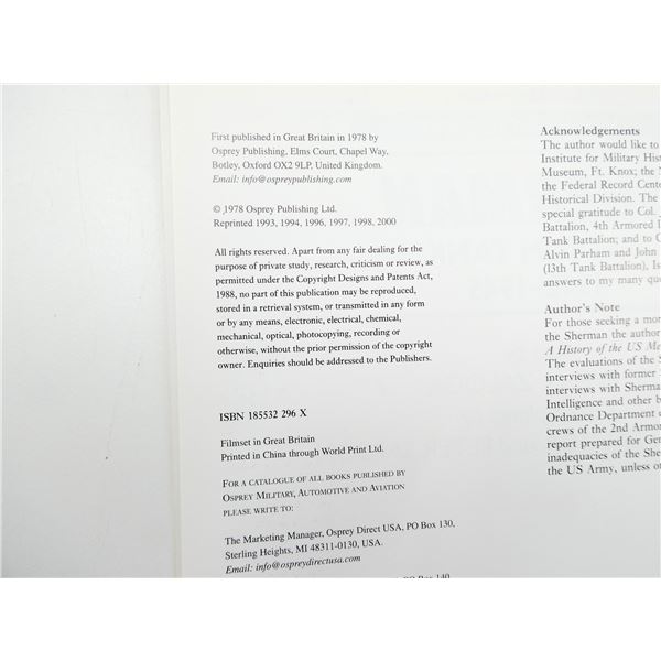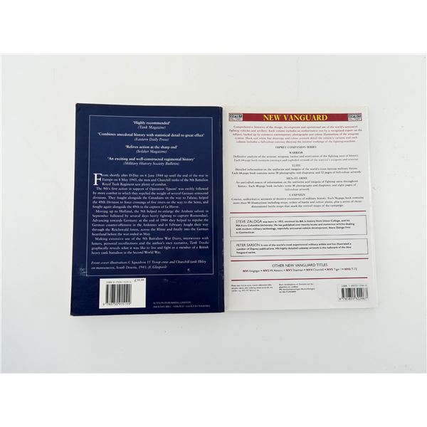 SOFT COVERS, LOT INCLUDES; (1) "SHERMAN MEDIUM TANK 1942-1945" BOOK BY STEVE ZALOGA & PETER SARSON, ISBN: 185532-296-X & (1) "TANK TRACKS, 9TH BATTALION ROYAL TANK REGIMENT AT WAR 1940-45" BOOK BY PETER BEALE, ISBN: 0-7509-1519-6. SEE PHOTOS.