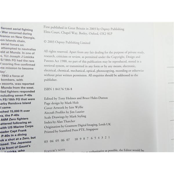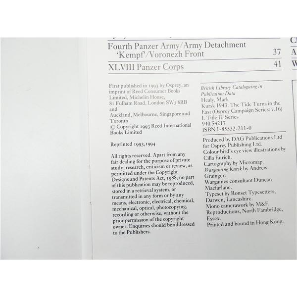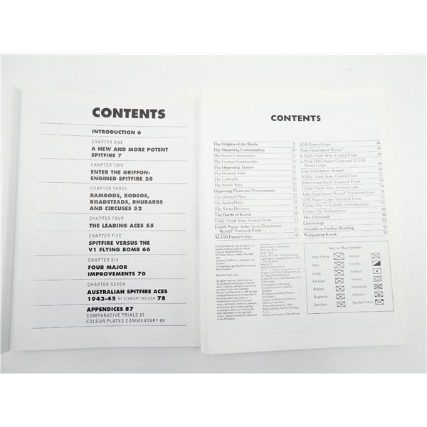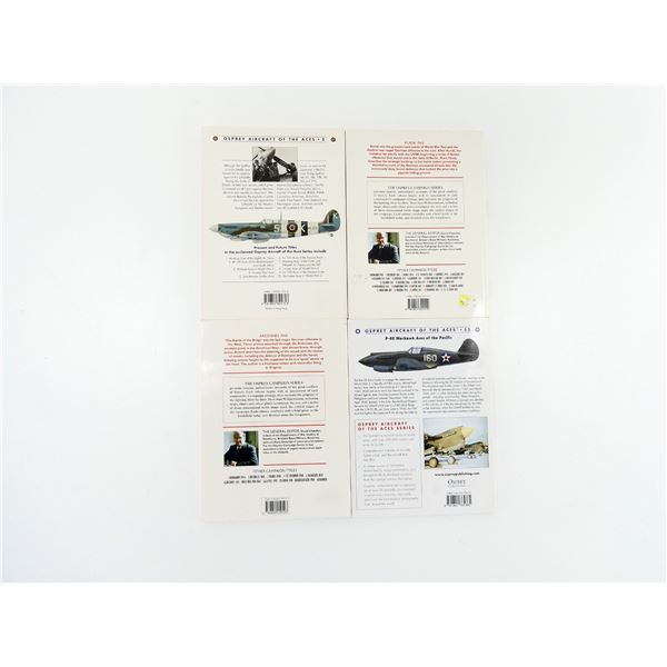 SOFT COVERS, SERIES NOT COMPLETE / SOME ISSUES MISSING, LOT INCLUDES; (1) "OSPREY AIRCRAFT OF THE ACES - 5, LATE MARQUE SPITFIRE ACES 1942-1945" BOOK BY ALFRED PRICE, ISBN: 1-85532-575-6, (1) "OSPREY AIRCRAFT OF THE ACES - 55, P-40 WARHAWK ACES OF THE PACIFIC" BOOK BY CARL MOLESWORTH, ISBN: 1-84176-536-8, (1) "OSPREY MILITARY CAMPAIGN SERIES 5, ARDENNES 1944, HITLER'S LAST GAMBLE IN THE WEST" BOOK BY JAMES R. ARNOLD, ISBN: 0-85045-959-1 & (1) "OSPREY MILITARY CAMPAIGN SERIES 16, KURSK 1943, THE TIDE TURNS IN THE EAST" BOOK BY MARK HEALY, ISBN: 1-85532-211-0. SEE PHOTOS.