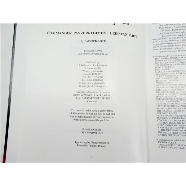 "JOCHEN PEIPER, COMMANDER PANZERREGIMENT LEIBSTANDARTE" BOOK