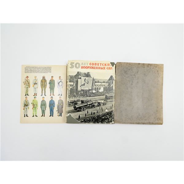 LOT INCLUDES; "50 YEARS OF THE SOVIET ARMED FORCES" BOOK BY VARIOUS AUTHORS, HARD COVER WITH DUST COVER, IN RUSSIAN, (1) "UNIFORMS OF THE WARSAW PACT" BOOK BY FRIEDRICH WIENER, SOFT COVER, ISBN: 0-85368-252-6 & (1) "HANDBOOK ON THE SOVIET ARMED FORCES JULY 1969, THE (RUSSIAN) MOTORIZED RIFLE COMPANY SEPT 1975" BOOK PREPARED BY DEFENSE INTELLIGENCE AGENCY. SEE PHOTOS.