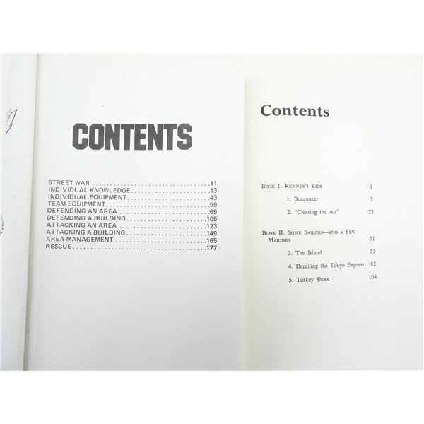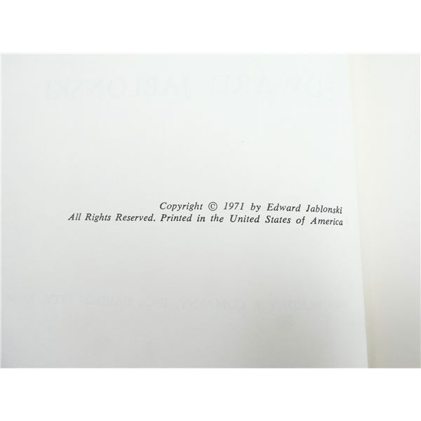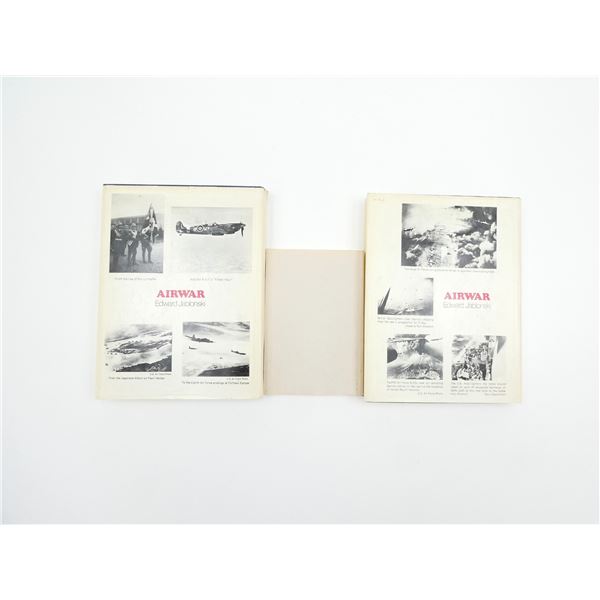 LOT INCLUDES; (1) "AIRWAR, TERROR FROM THE SKY/TRAGIC VICTORIES" BOOK BY EDWARD JABLONSKI, HARD COVER WITH DUST COVER, COPYRIGHT 1971, (1) "AIRWAR, OUTRAGED SKIES/WINGS OF FIRE" BOOK BY EDWARD JABLONSKI, HARD COVER WITH DUST COVER, COPYRIGHT 1971 & (1) "COMBAT: HOUSE TO HOUSE" BOOK BY TERRY EDWARDS, SOFT COVER, COPYRIGHT 1979. SEE PHOTOS.