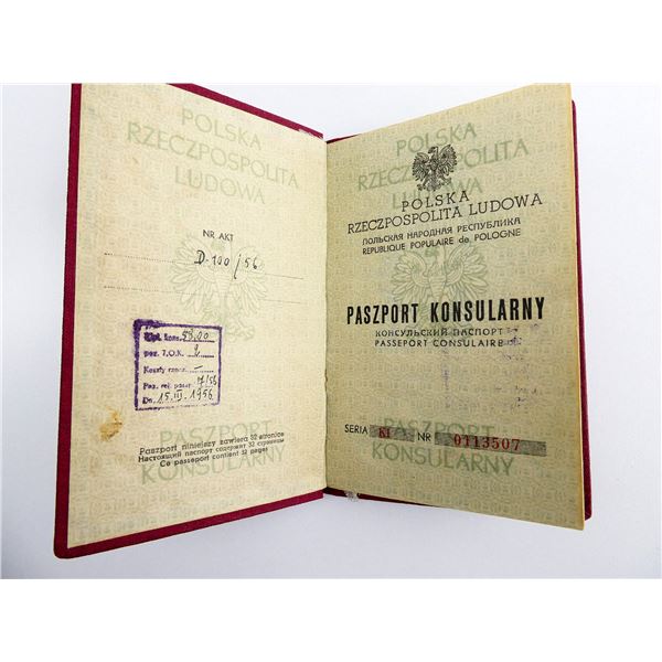 LOT INCLUDES; (1) "CONSULAR PASSPORT" FROM THE POLISH PEOPLE'S REPUBLIC, HARD COVER, IN POLISH & (1) ID CARD, SOFT COVER, IN POLISH. SEE PHOTOS.