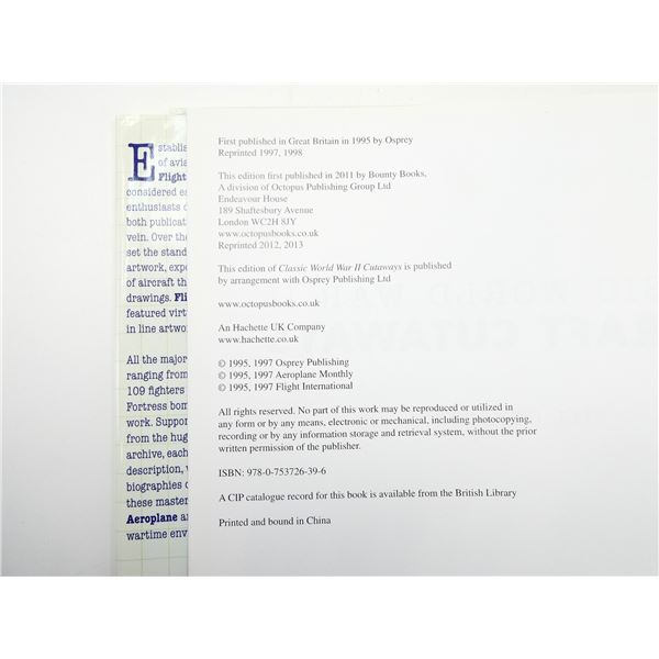 HARD COVERS WITH DUST COVERS, LOT INCLUDES; (1) "WINGS ACROSS CANADA, AN ILLUSTRATED HISTORY OF CANADIAN AVIATION" BOOK BY PETER PIGOTT, ISBN: 1-55002-412-4, (1) "101 GREAT FIGHTERS, LEGENDARY FIGHTING AIRCRAFT FROM WWI TO THE PRESENT" BOOK EDITED BY ROBERT JACKSON, ISBN: 978-1-905704-74-3, (1) "CLASSIC WORLD WAR II AIRCRAFT CUTAWAYS" BOOK BY BILL GUNSTON, ISBN: 978-0-753726-39-6, (1) "B-17 FLYING FORTRESS" BOOK BY ROGER FREEMAN & RIKYU WATANABE, ISBN: 0-517-54985-9 & (1) "SEAPLANES & FLYING BOATS, EVERY CLASSIC MODEL, FROM AVIATION'S EARLIEST DAYS TO THE PRESENT" BOOK BY BILL YENNE & JOHN BATCHELOR, ISBN: 1-932302-03-4. SEE PHOTOS.