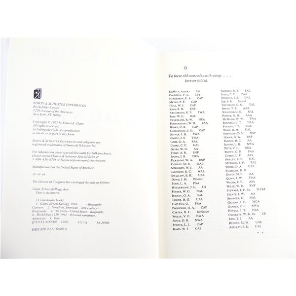(1) BY ERNEST K. GANN, SOFT COVER, ISBN: 978-0-671-63603-6. SEE PHOTOS.