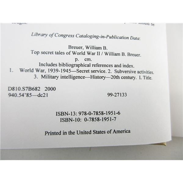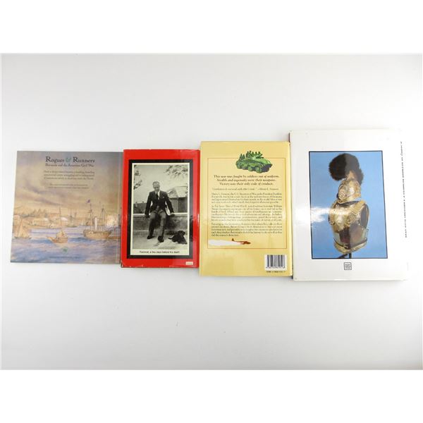 LOT INCLUDES; (1) "ROMMEL, THE DESERT FOX" BOOK BY DESMOND YOUNG, HARD COVER WITH DUST COVER, COPYRIGHT 1978, (1) "ROGUES & RUNNERS, BERMUDA AND THE AMERICAN CIVIL WAR" BOOK BY CATHERINE LYNCH DEICHMANN, SOFT COVER, ISBN: 0-9693939-9-7, (1) "MILITARIA, A STUDY OF GERMAN HELMETS & UNIFORMS 1729-1918" BOOK BY JAN K. KUBE, HARD COVER WITH DUST COVER, ISBN: 0-88740-243-7 & (1) "TOP SECRET TALES OF WORLD WAR II" BOOK BY WILLIAM B. BREUER, HARD COVER WITH DUST COVER, ISBN: 0-7858-1951-7. SEE PHOTOS.