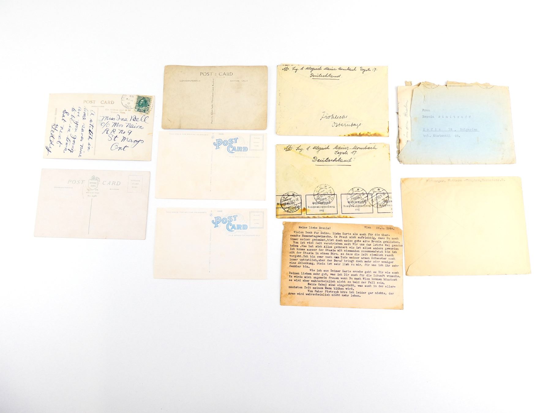 Lot 34210 ASSORTED WWI AND WWII POSTCARDS AND STAMPED ENVELOPES LOT