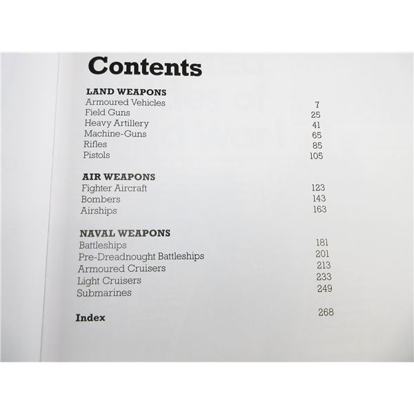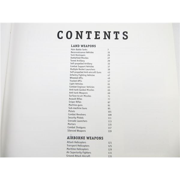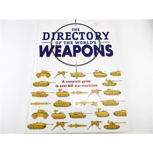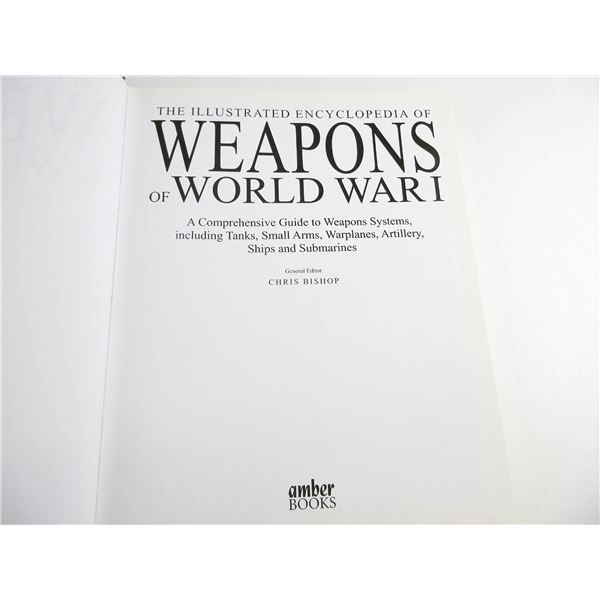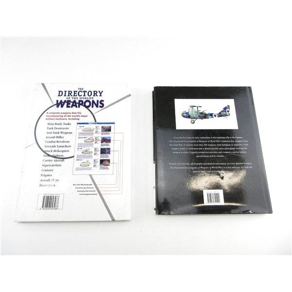 LOT INCLUDES; (1) "THE ILLUSTRATED ENCYCLOPEDIA OF WEAPONS OF WORLD WAR I" BOOK EDITED BY CHRIS BISHOP, HARD COVER WITH DUST COVER, ISBN: 978-1-78274-141-1 & (1) "THE DIRECTORY OF THE WORLD'S WEAPONS" BOOK PUBLISHED BY BLITZ EDITIONS, HARD COVER, ISBN: 1-85605-348-2. SEE PHOTOS.