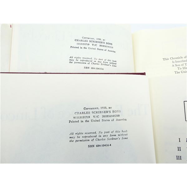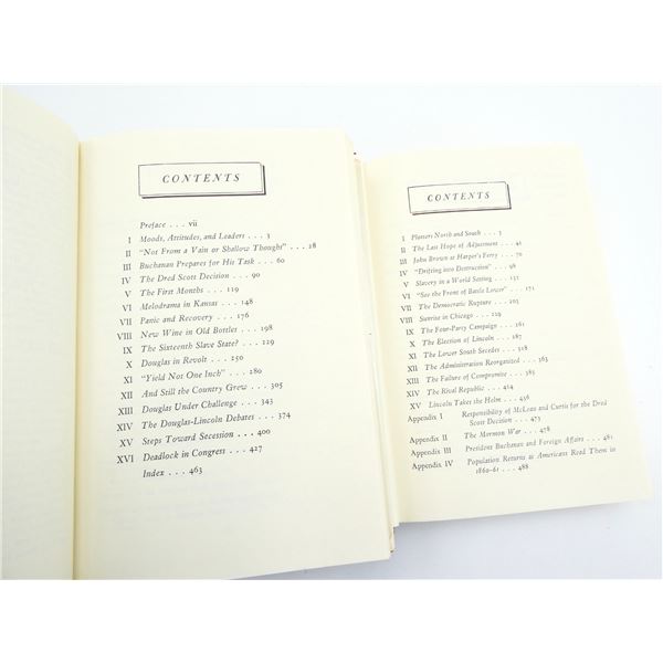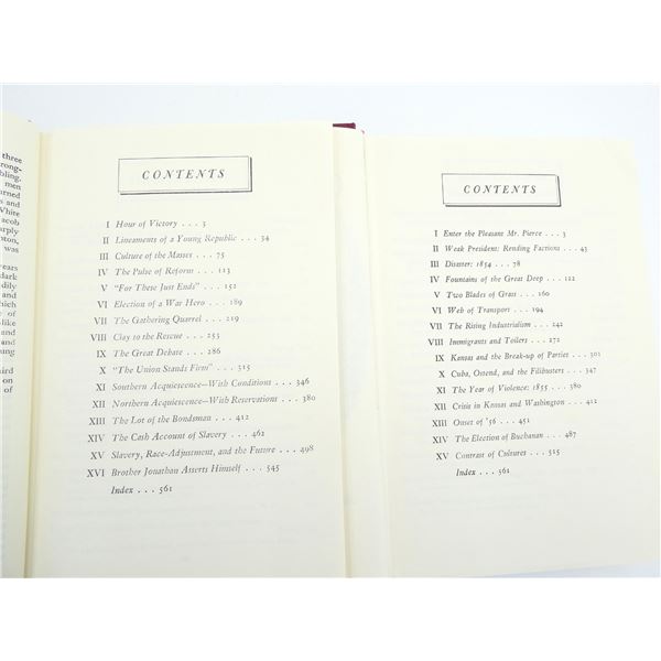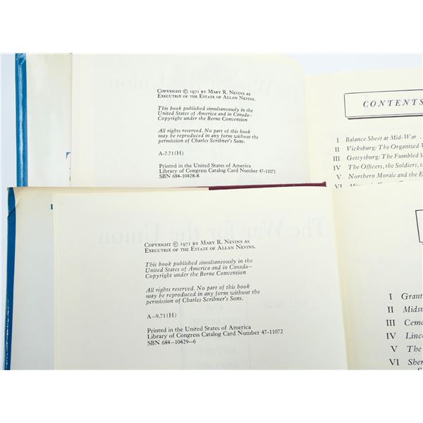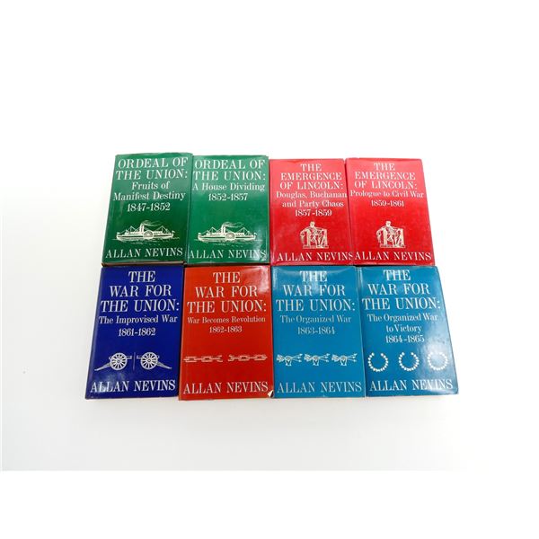 HARD COVERS WITH DUST COVERS, AUTHOR ALLAN NEVINS, LOT INCLUDES; (1) "ORDEAL OF THE UNION: FRUITS OF MANIFEST DESTINY 1847-1852" BOOK, ISBN: 0-684-10423-7, (1) "ORDEAL OF THE UNION: A HOUSE DIVIDING 1852-1857" BOOK, ISBN: 0-684-10424-5, (1) "THE EMERGENCE OF LINCOLN: DOUGLAS, BUCHANAN AND PARTY CHAOS 1857-1859" BOOK, ISBN: 0-684-10415-6, (1) "THE EMERGENCE OF LINCOLN: PROLOGUE TO CIVIL WAR 1859-1861" BOOK, ISBN: 0-684-10416-4, (1) "THE WAR FOR THE UNION: THE IMPROVISED WAR 1861-1862" BOOK, ISBN: 0-684-10426-1, (1) "THE WAR FOR THE UNION: WAR BECOMES REVOLUTION 1862-1863" BOOK, ISBN: 0-684-10427-X, (1) "THE WAR FOR THE UNION: THE ORGANIZED WAR 1863-1864" BOOK, ISBN: 0-684-10428-8 & (1) "THE WAR FOR THE UNION: THE ORGANIZED WAR TO VICTORY 1864-1865" BOOK, ISBN: 0-684-10429-6. SEE PHOTOS.