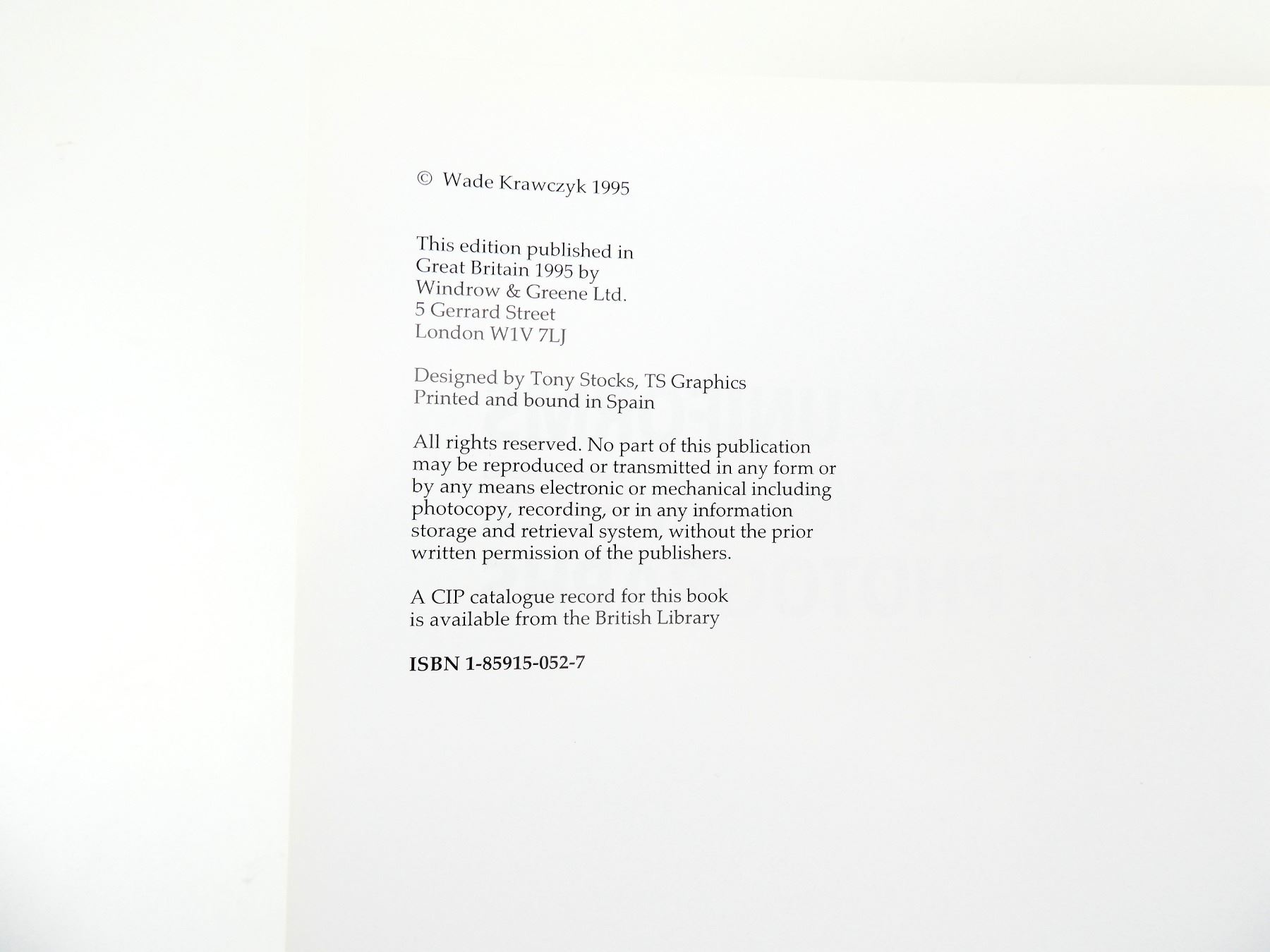 (1) BY WADE KRAWCZYK, HARD COVER WITH DUST COVER, ISBN: 1-85915-052-7. SEE PHOTOS.