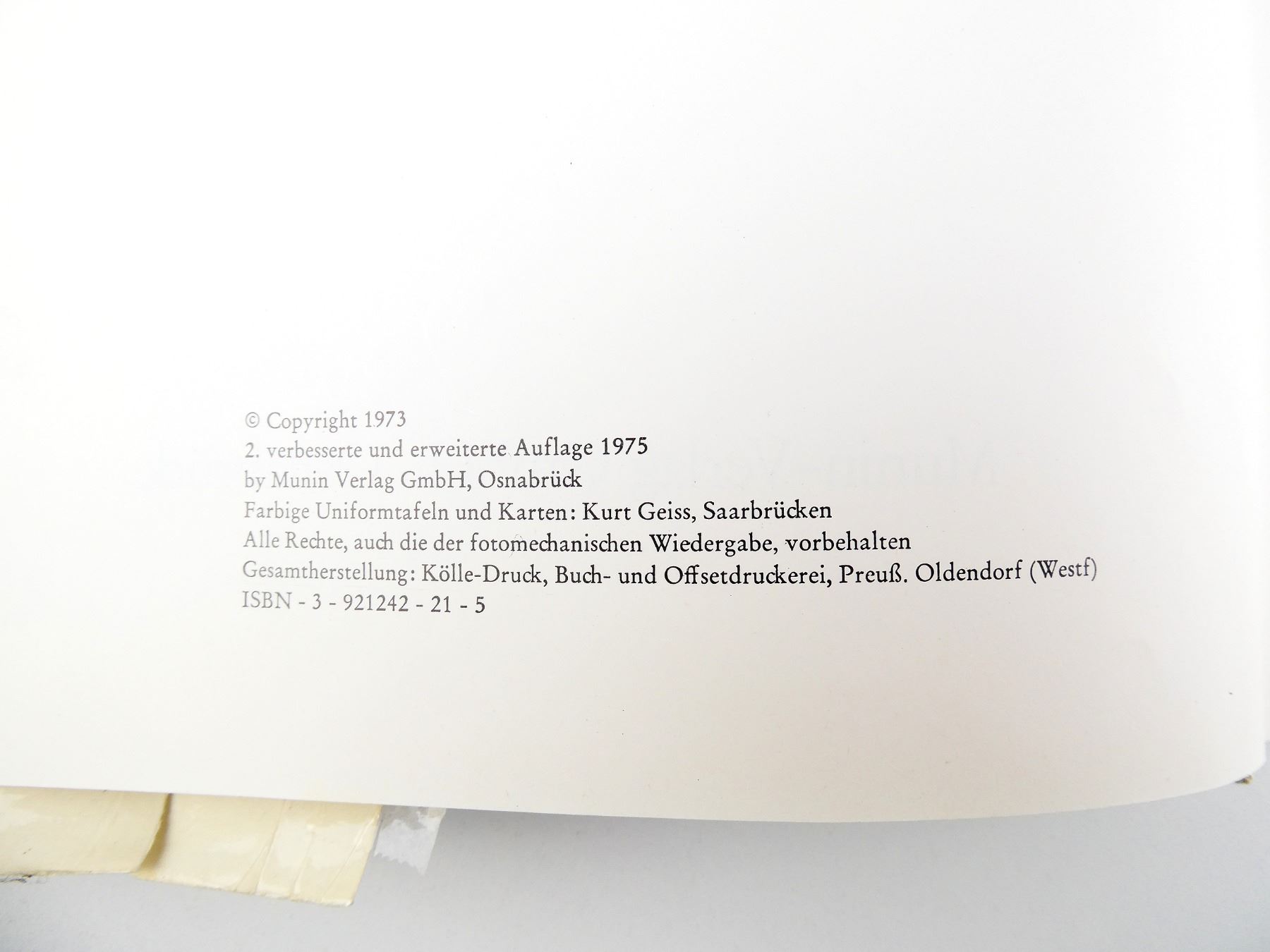 (1) PUBLISHED BY MUNIN-VERLAG GMBH, HARD COVER WITH DUST COVER, IN GERMAN/ENGLISH, ISBN: 3-921242-21-5. SEE PHOTOS.
