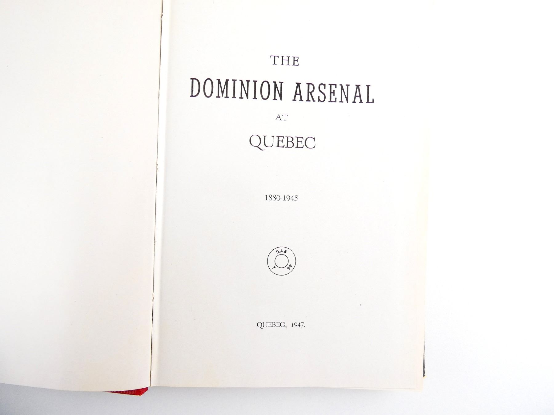 "THE DOMINION ARSENAL AT QUEBEC 1880-1945" BOOK