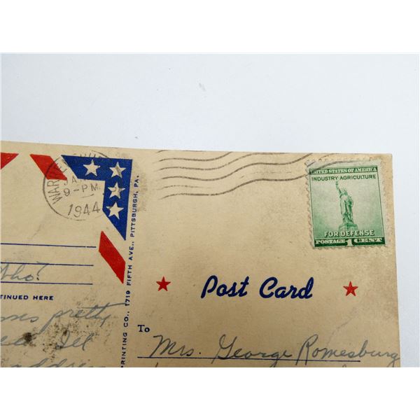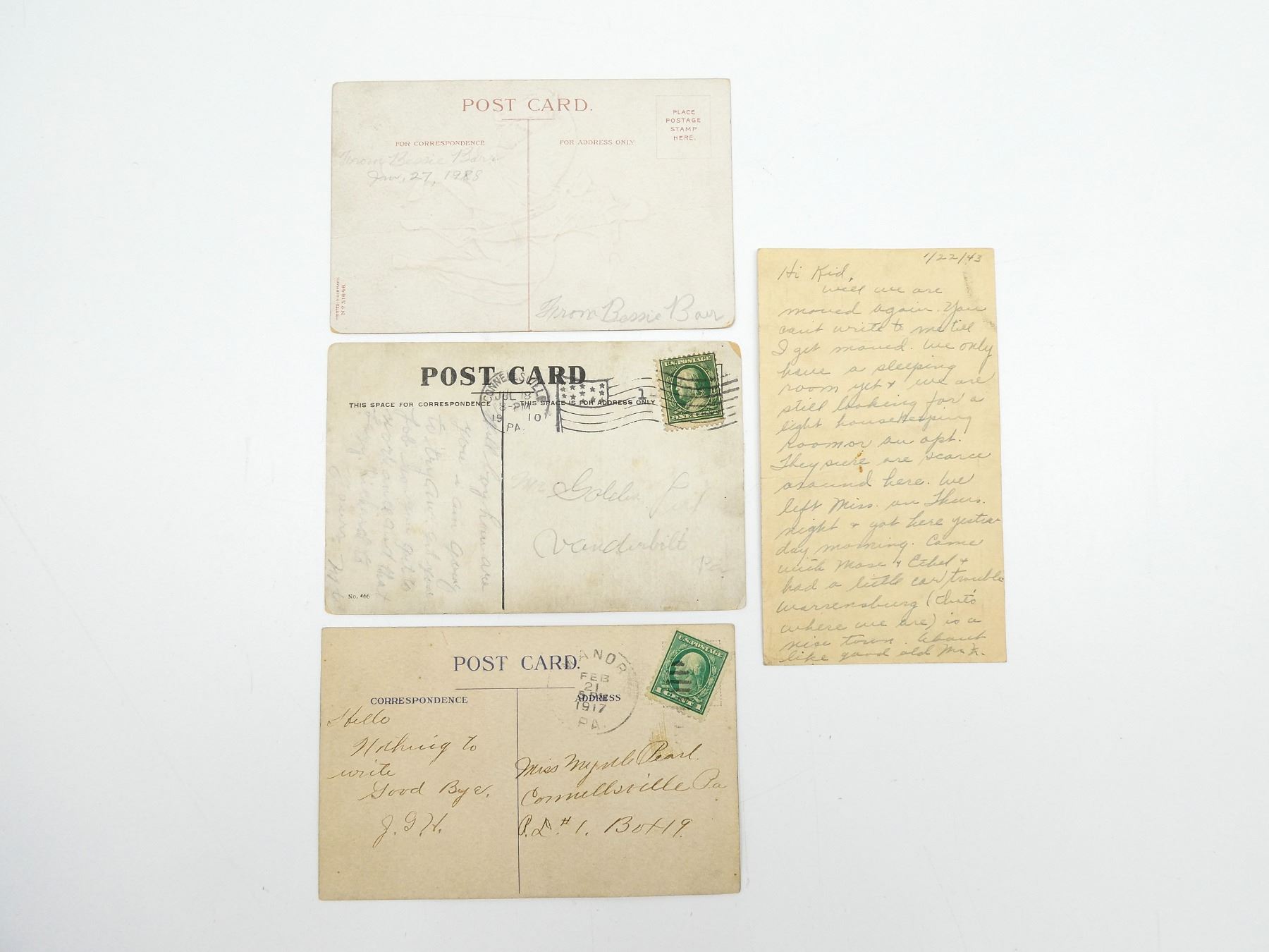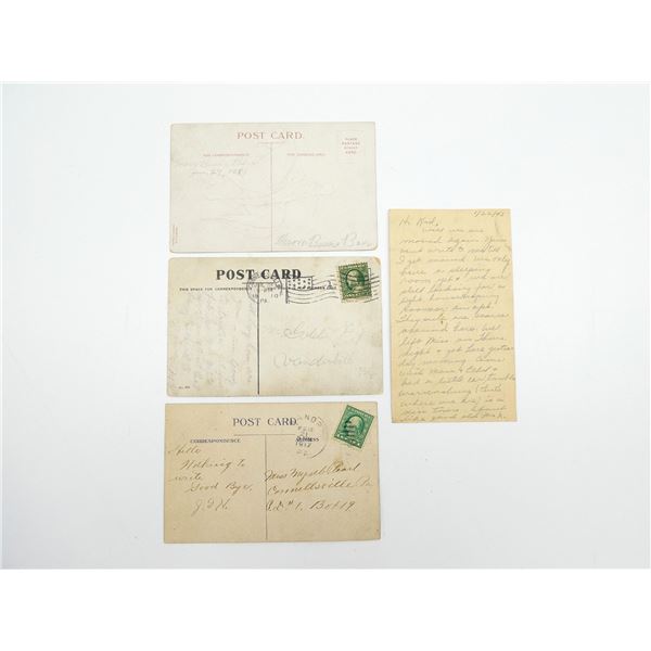 LOT INCLUDES; (4) PRE-WWI, WWI, WWII & ETC. STAMPED VINTAGE AMERICAN HISTORY POSTCARDS DATED 1910-1988. SEE PHOTOS.