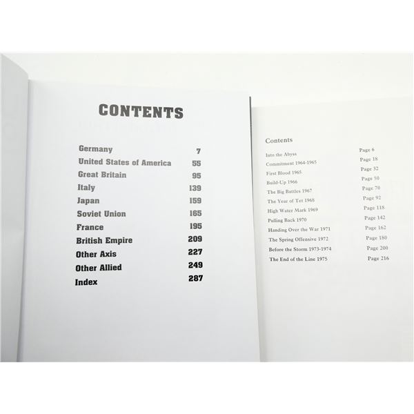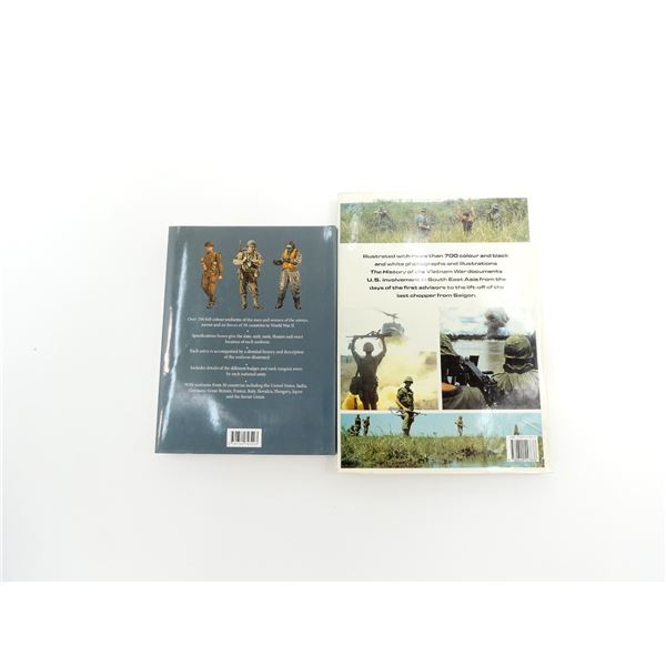 HARD COVERS WITH DUST COVERS, LOT INCLUDES; (1) "UNIFORMS OF WORLD WAR II" BOOK BY PETER DARMAN, ISBN: 978-1-78274-329-3 & (1) "THE HISTORY OF THE VIETNAM WAR" BOOK BY CHARLES T. KAMPS JR, ISBN: 0-600-55783-9. SEE PHOTOS.