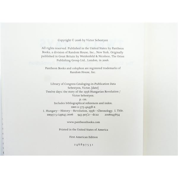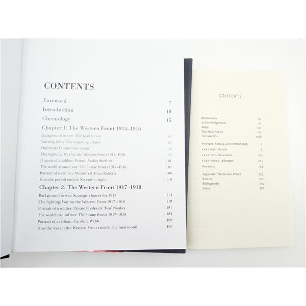 LOT INCLUDES; (1) "EVERYMAN'S LIBRARY, THE HISTORY OF NAPOLEON BUONAPARTE" BOOK BY JOHN GIBSON LOCKHART, SOFT COVER, REPRINTED APRIL 1906, (1) "CENTURY OF CONFLICT" BOOK BY JOSEPH LISTER RUTLEDGE, HARD COVER WITH DUST COVER, COPYRIGHT 1956, (1) "HARCUNK... 1920-1945, A HAZAAERT MINDHALAALIG!" BOOK BY ATTILA SIMONTSITS AND KAROLY KOVENDY, SOFT COVER, WRITTEN IN HUNGARIAN, DATED 1975, (1) "TWELVE DAYS, THE STORY OF THE 1956 HUNGARIAN REVOLUTION" BOOK BY VICTOR SEBESTVEN, HARD COVER WITH DUST COVER, ISBN: 0-375-42458-X, (1) "THE DAMNED DIE HARD" BOOK BY HUGH MCLEAVE, HARD COVER, COPYRIGHT 1973 & (1) "THE FIRST WORLD WAR, THE WAR TO END ALL WARS" BOOK BY PETER SIMKINS, GEOFFREY JUKES & MICHAEL HICKEY, HARD COVER WITH DUST COVER, ISBN: 978 1 78200 280 2. SEE PHOTOS.