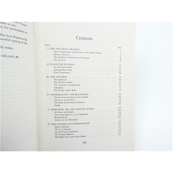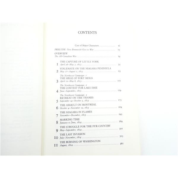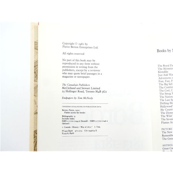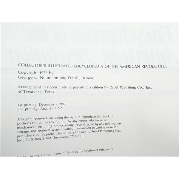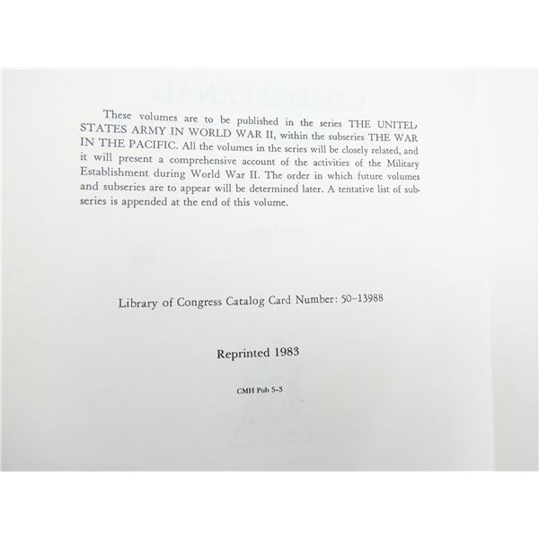 LOT INCLUDES; (1) "UNITED STATES ARMY IN WORLD WAR II, THE WAR IN THE PACIFIC, GUADALCANAL: THE FIRST OFFENSIVE" BOOK BY JOHN MILLER JR., HARD COVER, REPRINTED 1983, (1) "FLAMES ACROSS THE BORDER 1813-1814" BOOK BY PIERRE BERTON, HARD COVER, ISBN: 0-7710-1246-2 & (1) "COLLECTOR'S ILLUSTRATED ENCYCLOPEDIA OF THE AMERICAN REVOLUTION" BOOK BY GEORGE C. NEUMANN & FRANK J. KRAVIC, SOFT COVER, ISBN: 0-9605666-8-6. SEE PHOTOS.