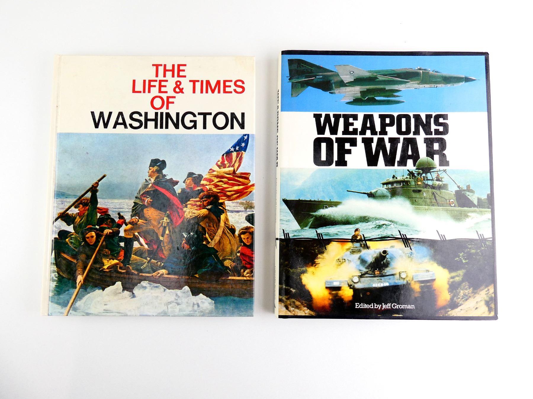 LOT INCLUDES; (1) "THE LIFE & TIMES OF WASHINGTON" BOOK EDITED BY ENZO ORLANDI, HARD COVER, COPYRIGHT 1967 & (1) "WEAPONS OF WAR" BOOK EDITED BY JEFF GROMAN, HARD COVER WITH DUST COVER, ISBN: 0-8317-9384-8. SEE PHOTOS.