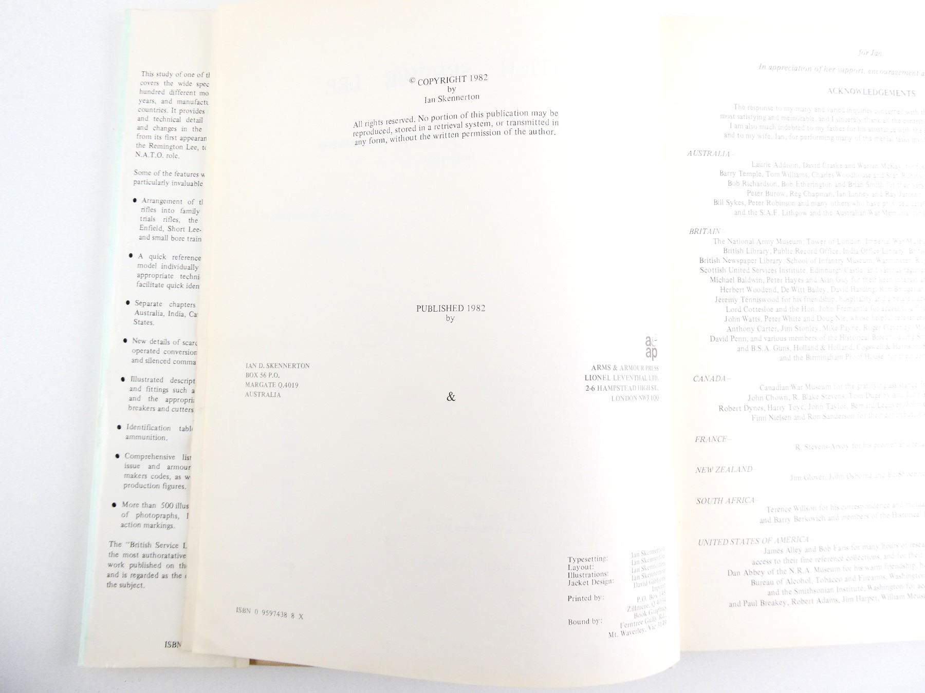 LOT INCLUDES; (1) "THE BRITISH SERVICE LEE" BOOK BY IAN D. SKENNERTON, HARD COVER WITH DUST COVER, ISBN: 0-9597438-8-X & (1) "A TREATISE ON THE SNIDER, THE BRITISH SOLDIER'S FIREARM 1866-C1880" BOOK BY IAN D. SKENNERTON, HARD COVER, ISBN: 01-9597438-7-1. SEE PHOTOS.
