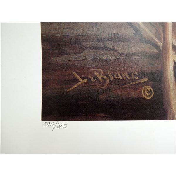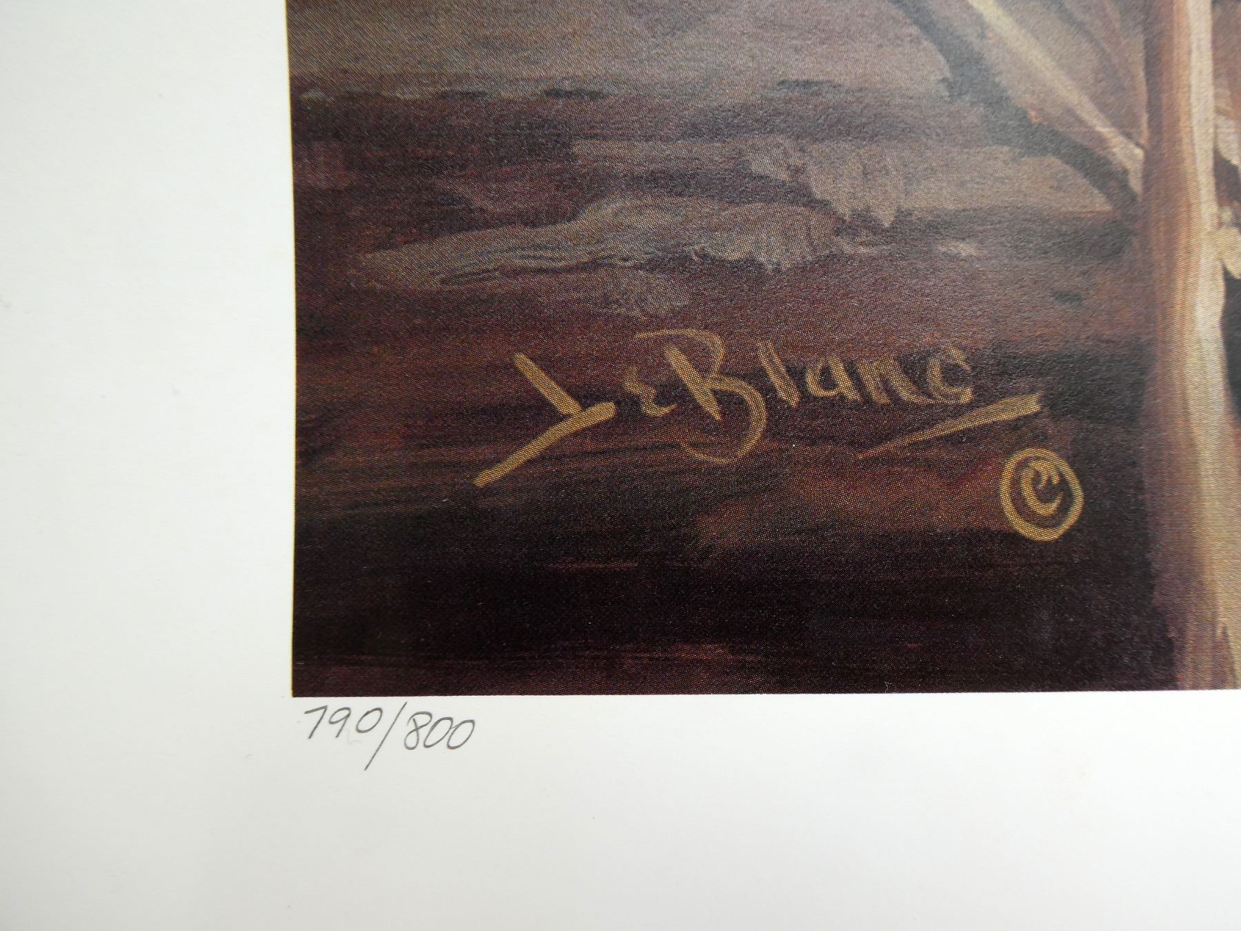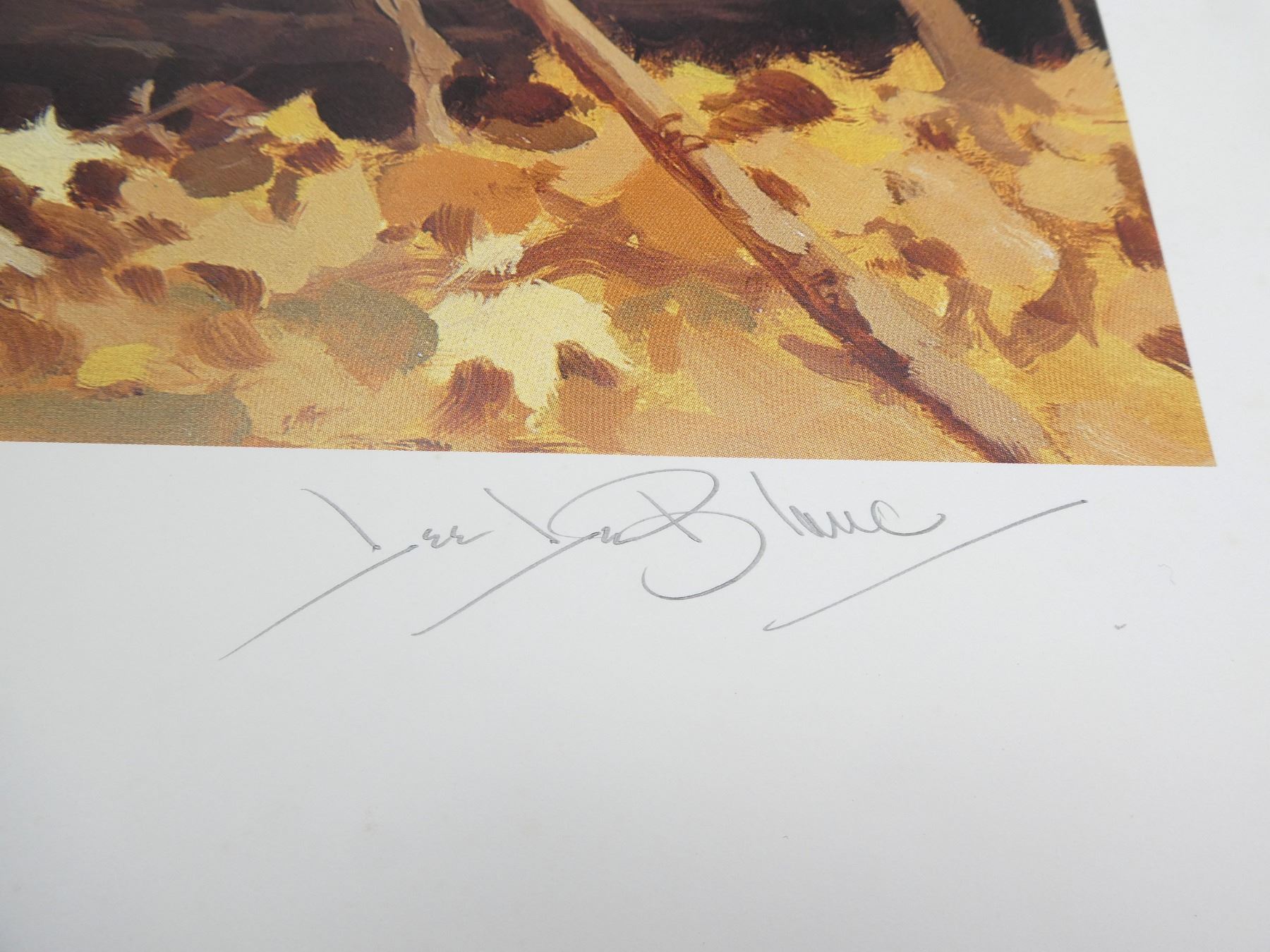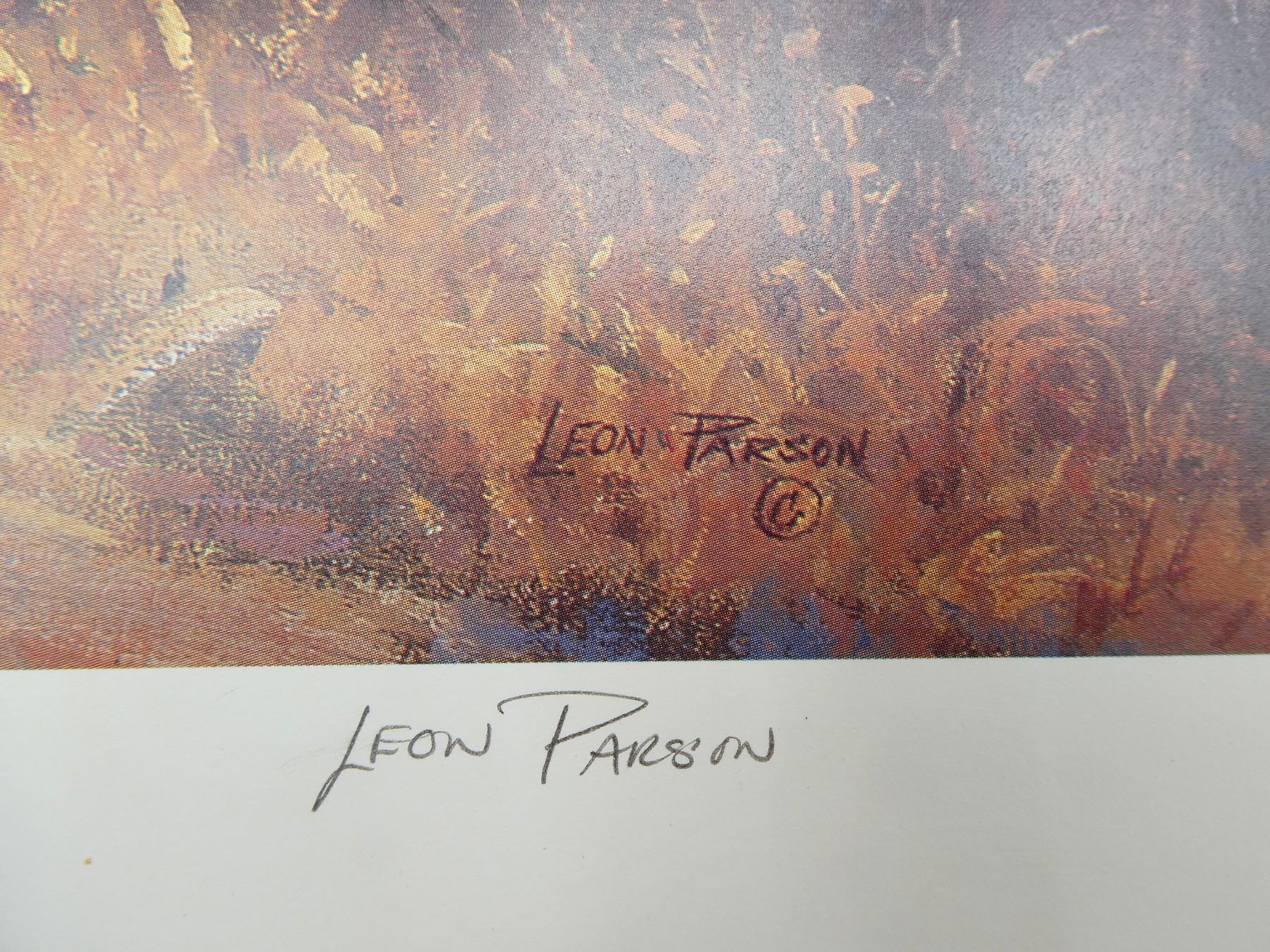 LOT INCLUDES; (1) "AUTUMN RUFFS" PRINT BY LEE LEBLANC, PRINT NO. 790 / 800, SIGNED BY ARTIST, PUBLISHED BY PETERSON PRINTS, COPYRIGHT 1983, SHOWS SOME WEAR & TEAR, APPROX. 29" X 21" & (1) "MOUNTAIN MUSIC (AMERICAN ELK)" PRINT BY LEON PARSON, PRINT NO. 496 / 950, SIGNED BY ARTIST, SHOWS WEAR & TEAR, APPROX. 30" X 20". SEE PHOTOS.