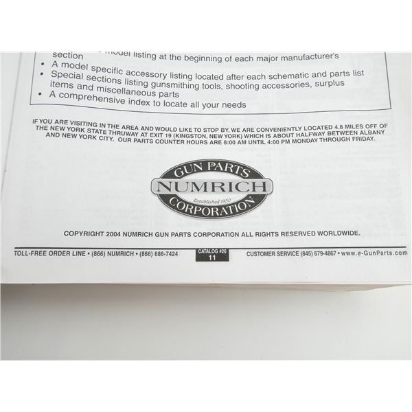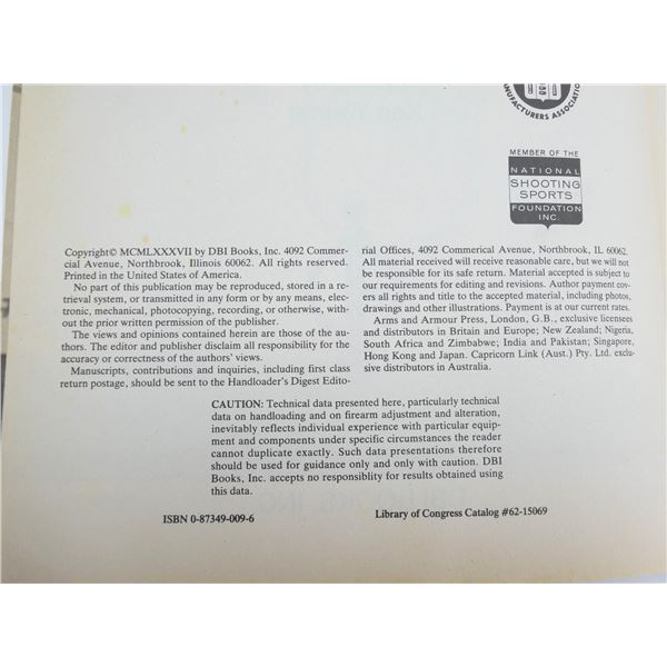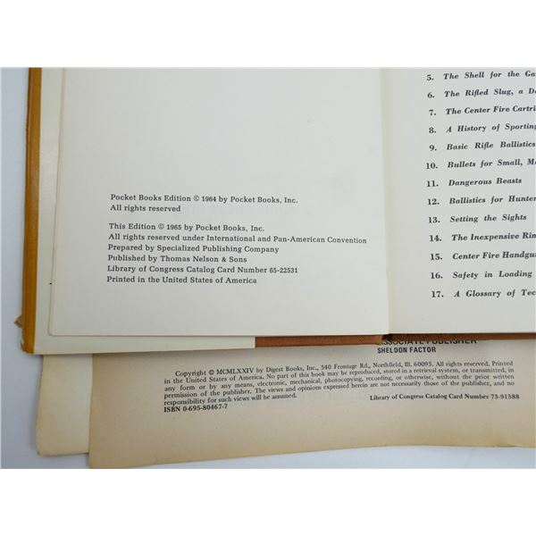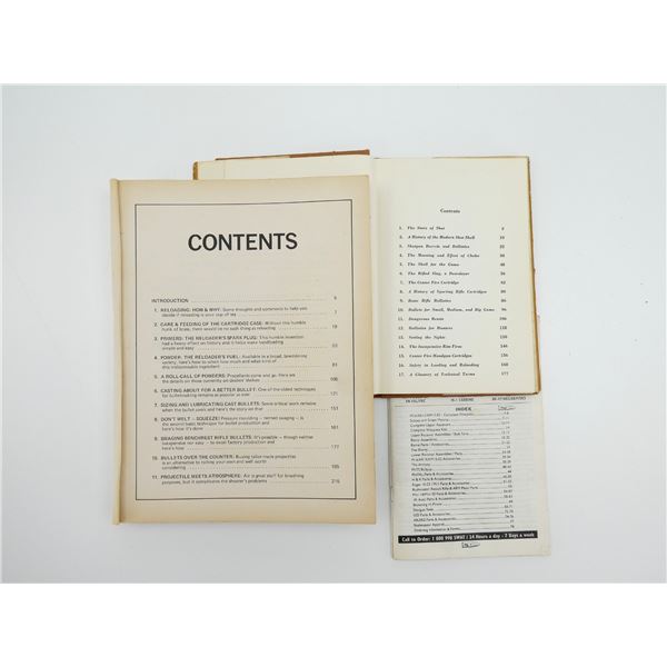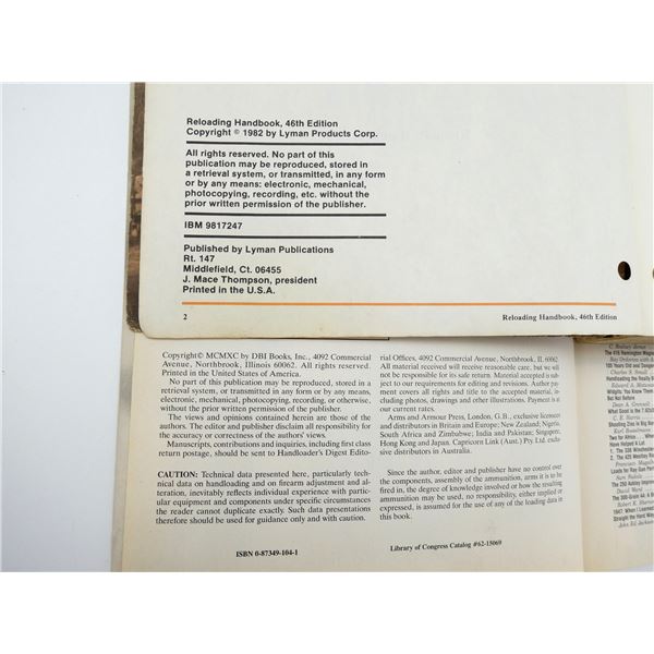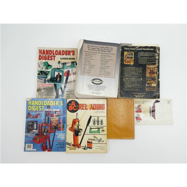 LOT INCLUDES; (1) "NUMRICH GUN PARTS CORPORATION, FIREARMS PARTS CATALOG #26" BOOK, SOFT COVER, (1) "HANDLOADER'S DIGEST" BOOK EDITED BY KEN WARNER, ELEVENTH EDITION, SOFT COVER, ISBN: 0-87349-009-6, (1) "HANDLOADER'S DIGEST" BOOK EDITED BY KEN WARNER, TWELFTH EDITION, SOFT COVER, ISBN: 0-87349-104-1, (1) "LYMAN RELOADING HANDBOOK" BOOK EDITED BY C. KENNETH RAMAGE, 46TH EDITION, SOFT COVER, COPYRIGHT 1982, (1) "THE ABC'S OF RELOADING" BOOK BY DEAN GRENNELL, SOFT COVER, ISBN: 0-695-80467-7, (1) "QUALITY PARTS CO. / BUSHMASTER" CATALOG, VOLUME XII SPRING / SUMMER '95, SOFT COVER & (1) "THE WINCHESTER - WESTERN AMMUNITION HANDBOOK" BOOK, HARD COVER, 1965. SEE PHOTOS.