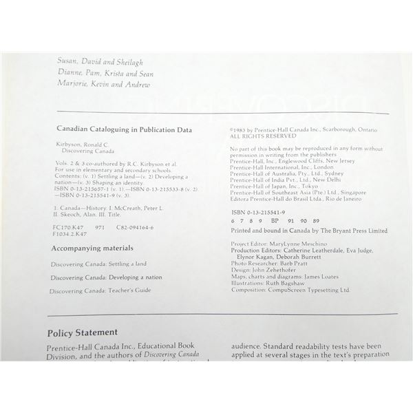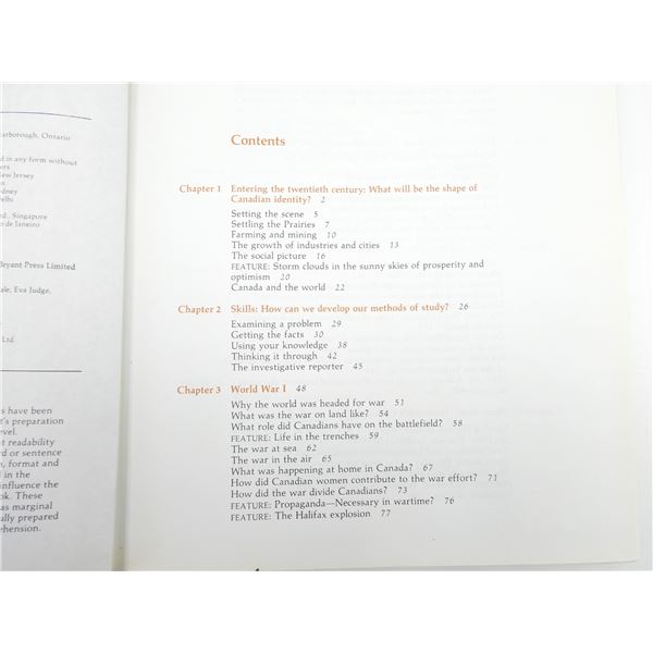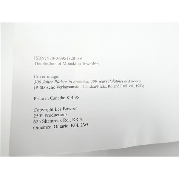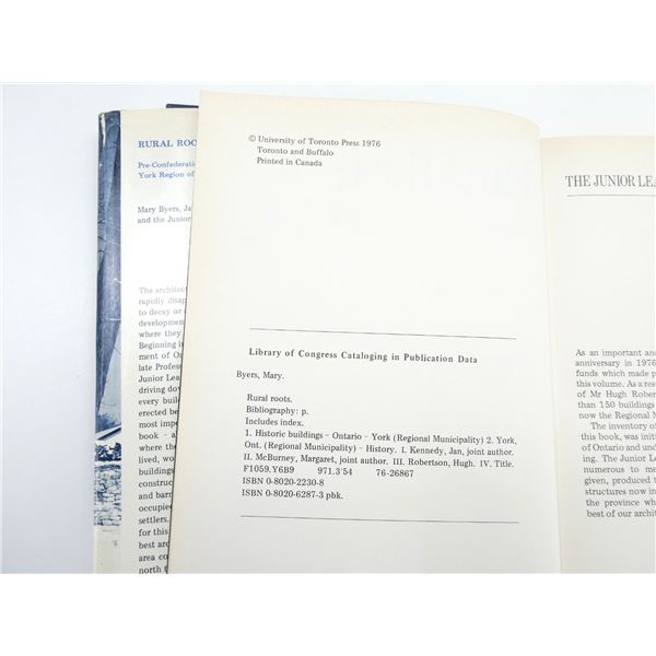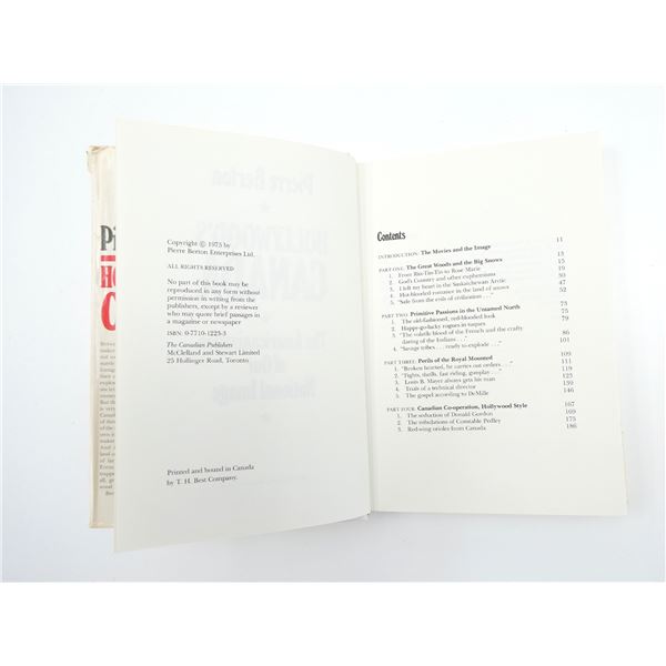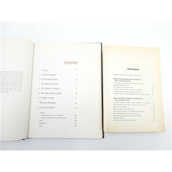 LOT INCLUDES; (1) "THE STAR AND THE LAUREL" BOOK, BY BEVERLY RAE KIMES, HARD COVER WITH DUST COVER, ISBN 0-936573-01-5, (1) "THE LAND AND WILDLIFE OF NORTH AMERICA" BOOK, BY PETER FARB, COPYRIGHT 1966, (1) "DISCOVERING CANADA SHAPING AN IDENTITY" BOOK, EDITED BY RONALD C. KIRBYSON, HARD COVER, ISBN 0-13-215541-9, (1) "THE SETTLERS OF MONCKTON TOWNSHIP" BOOK, BY LES BOWSER, SOFT COVER, ISBN 0-978-0-9951828-0-6, (1) "RURAL ROOTS" BOOK, BY MARY BYERS, JAN KENNEDY & MARGARET MCBURNEY, HARD COVER WITH DUST COVER, ISBN 0-8020-2230-8, (1) "HOLLYWOOD'S CANADA" BOOK, BY PIERRE BERTON, HARD COVER WITH DUST COVER, ISBN 0-7710-1223-3, (1) "CHEERS! A INTEMPERATE HISTORY OF BEER IN CANADA" BOOK, BY NICHOLAS PASHLEY, SOFT COVER, ISBN 978-55468-257-7. SEE PHOTOS.