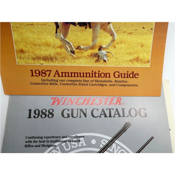 SOFT COVERS, LOT INCLUDES; (1) "WINCHESTER SUPER XCELLENCE '84" CATALOGUE, COPYRIGHT 1984, (1) "WINCHESTER CLASSIC DOUBLES" CATALOGUE, (1) "WINCHESTER LOAD UP WITH THE LEGEND, 1987 AMMUNITION GUIDE" CATALOGUE, COPYRIGHT 1987, (1) "WINCHESTER WESTERN, 1981 SPORTING ARMS AND AMMUNITION" CATALOGUE, COPYRIGHT 1980 & (1) "WINCHESTER 1988 GUN CATALOG" CATALOGUE. SEE PHOTOS.