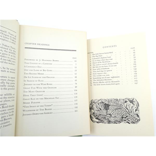 HARD COVERS WITH DUST COVERS, LOT INCLUDES; (1) "FROM OUT OF THE YUKON" BOOK BY JAMES H. BOND, COPYRIGHT 1948 & (1) MONGASO BOOK BY JOHN ALFRED JORDAN & JOHN PREBBLE, UNKNOWN SIGNATURE, COPYRIGHT 1956. SEE PHOTOS.