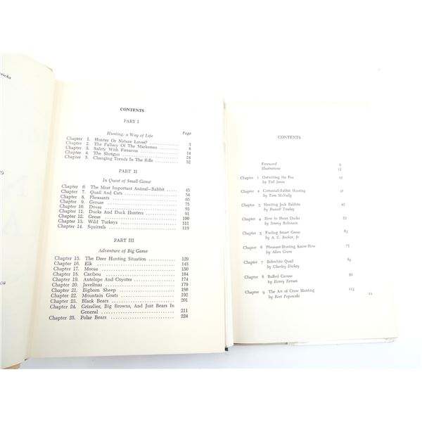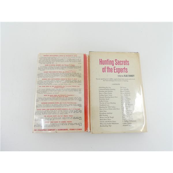 HARD COVERS WITH DUST COVERS, LOT INCLUDES; (1) "HUNTING SECRETS OF THE EXPERTS" BOOK EDITED BY VLAD EVANOFF, COPYRIGHT 1964 & (1) "HUNTING IN NORTH AMERICA" BY CONSTANCE HELMERICKS, COPYRIGHT 1959. SEE PHOTOS.