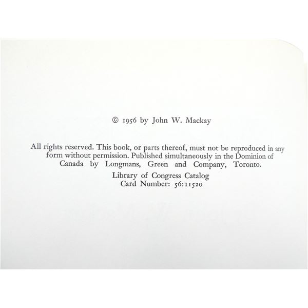 (1) BY JOHN W. MACKAY, HARD COVER WITH DUST COVER, SIGNED BY AUTHOR, COPYRIGHT 1956. SEE PHOTOS.