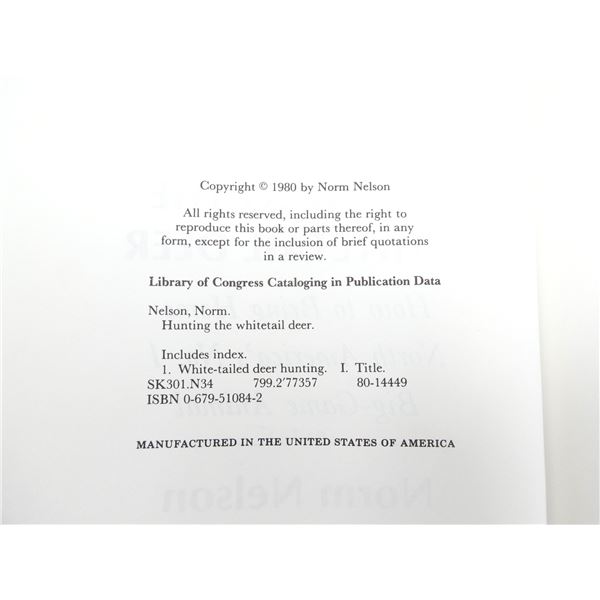 HARD COVERS WITH DUST COVERS, LOT INCLUDES; (1) "HUNTING THE WHITETAIL DEER" BOOK BY NORM NELSON, ISBN: 0-679-51084-2 & (1) "THE COMPLETE BOOK OF DEER HUNTING" BOOK BY BYRON W. DALRYMPLE, ISBN: 0-87691-108-4. SEE PHOTOS.