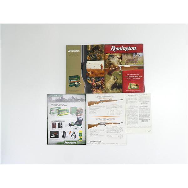 SOFT COVERS, LOT INCLUDES; (1) "REMINGTON 2007 CATALOG" CATALOGUE, COPYRIGHT 2007, (1) "REMINGTON" BROCHURE, COPYRIGHT 2011, (1) "REMINGTON MODEL 870 PUMP ACTION SHOTGUN 12, 16, 20 GUAGES 28, 410 & 20 GA. LW OWNER'S MANUAL" MANUAL, (1) "REMINGTON" BROCHURE & (1) "REMINGTON 2005 FIREARMS, AMMUNITION, ACCESSORIES CATALOG" CATALOGUE, COPYRIGHT 2005. SEE PHOTOS.