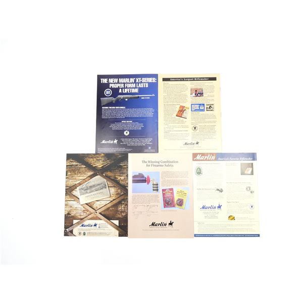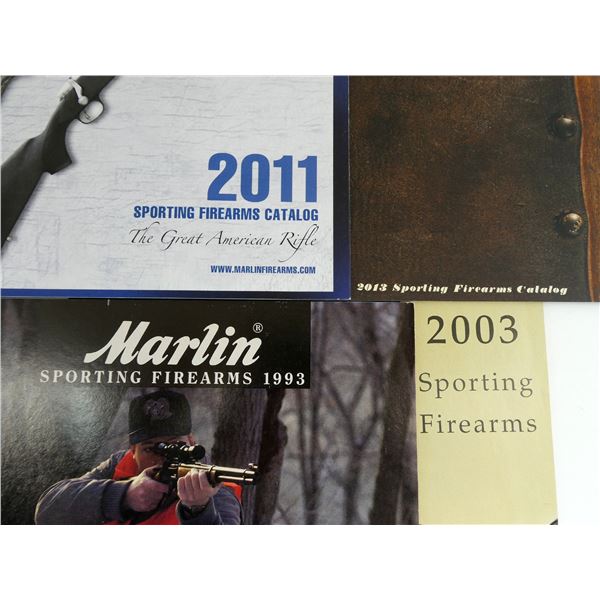 SOFT COVERS, LOT INCLUDES; (1) "MARLIN 2011 SPORTING FIREARMS CATALOG" CATALOGUE, COPYRIGHT 2011, (1) "MARLIN 2003 SPORTING FIREARMS" CATALOGUE, (1) "MARLIN 2013 SPORTING FIREARMS CATALOG" CATALOGUE, COPYRIGHT 2013, (1) "MARLIN SPORTING FIREARMS 1993" CATALOGUE, COPYRIGHT 1993 & (1) "MARLIN LIGHTNING SPEED, MAGNUM FORCE!" BROCHURE. SEE PHOTOS.