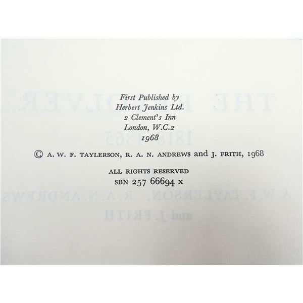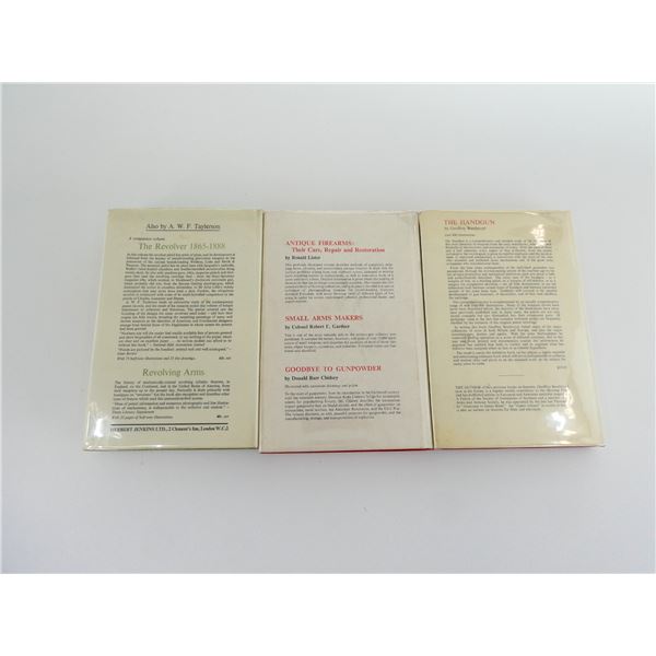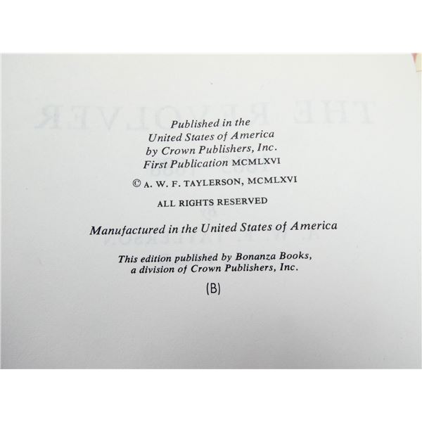 HARD COVERS WITH DUST COVERS, LOT INCLUDES; (1) "THE REVOLVER 1818-1865" BOOK BY A.W.F TAYLERSON, R.A.N. ANDREWS & J. FRITH, SBN: 257-66694-X, (1) "THE REVOLVER 1865-1888" BOOK BY A.W.F. TAYLERSON, COPYRIGHT 1966 & (1) "THE REVOLVER 1889-1914" BY A.W.F. TAYLERSON, COPYRIGHT 1971. SEE PHOTOS.