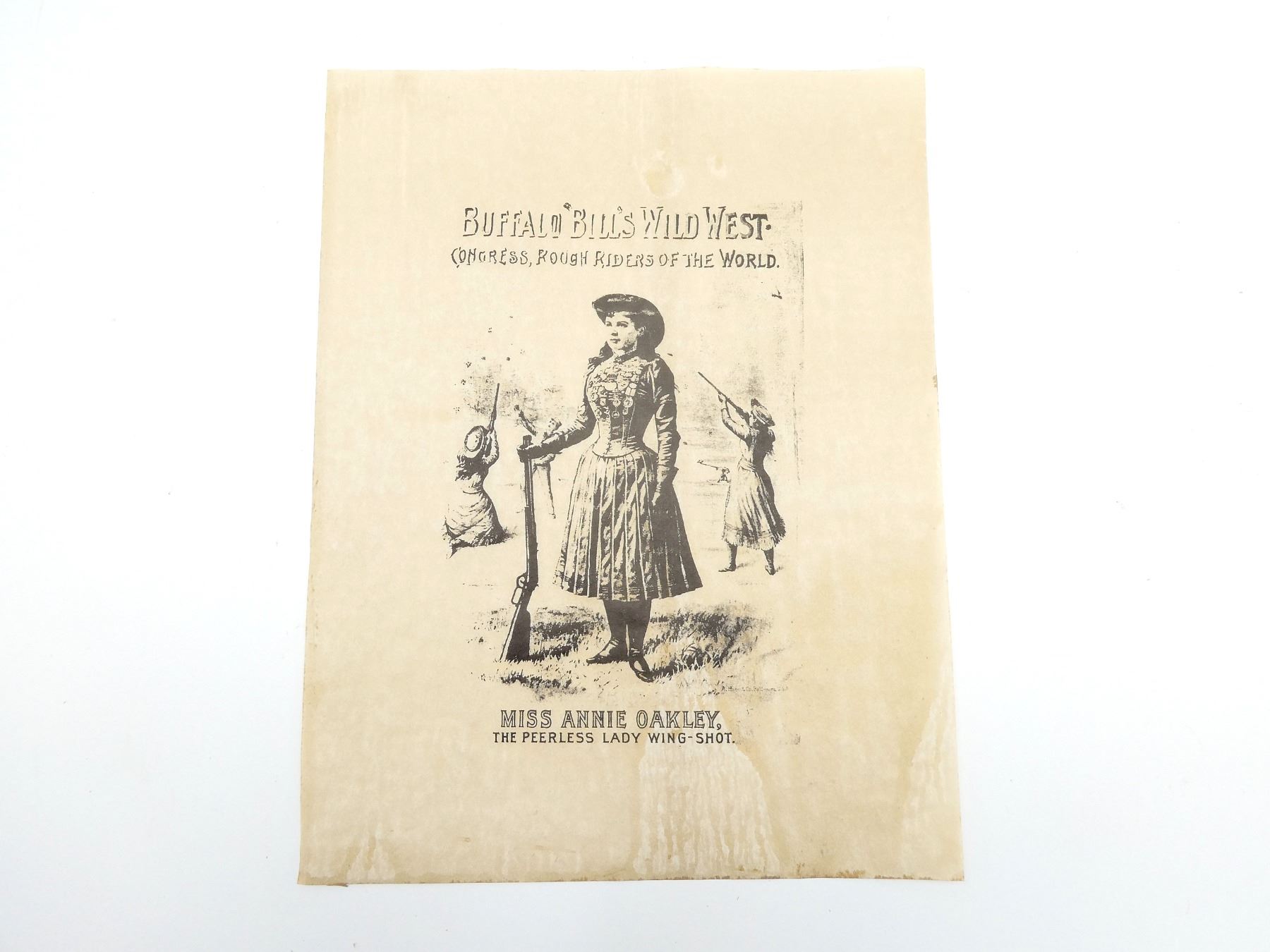 (1) "BUFFALO BILL'S WILD WEST, CONGRESS ROUGH RIDERS OF THE WORLD" ADVERTISEMENT POSTER, IN BLACK AND WHITE, APPROX. 11" X 8.5". SEE PHOTOS.