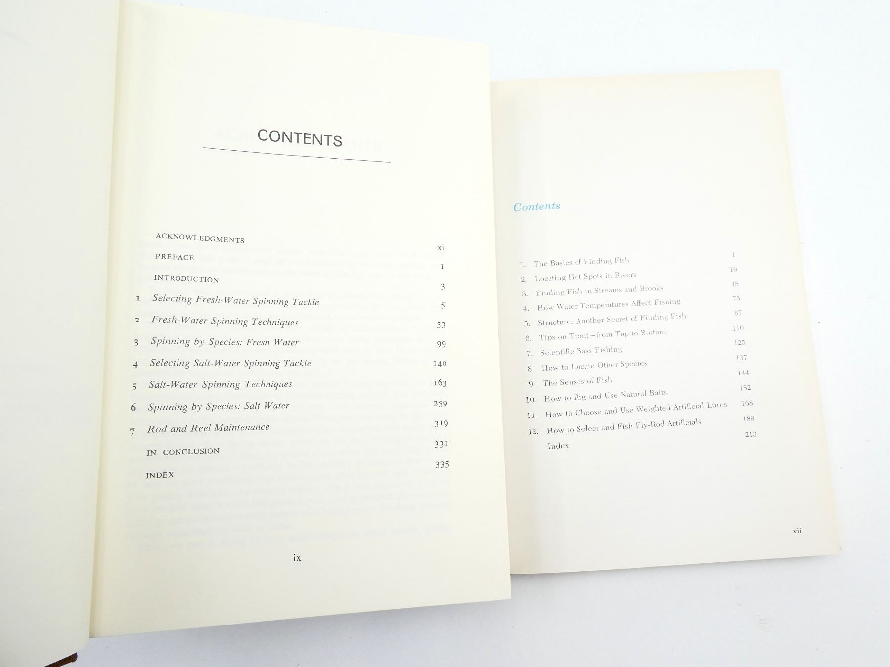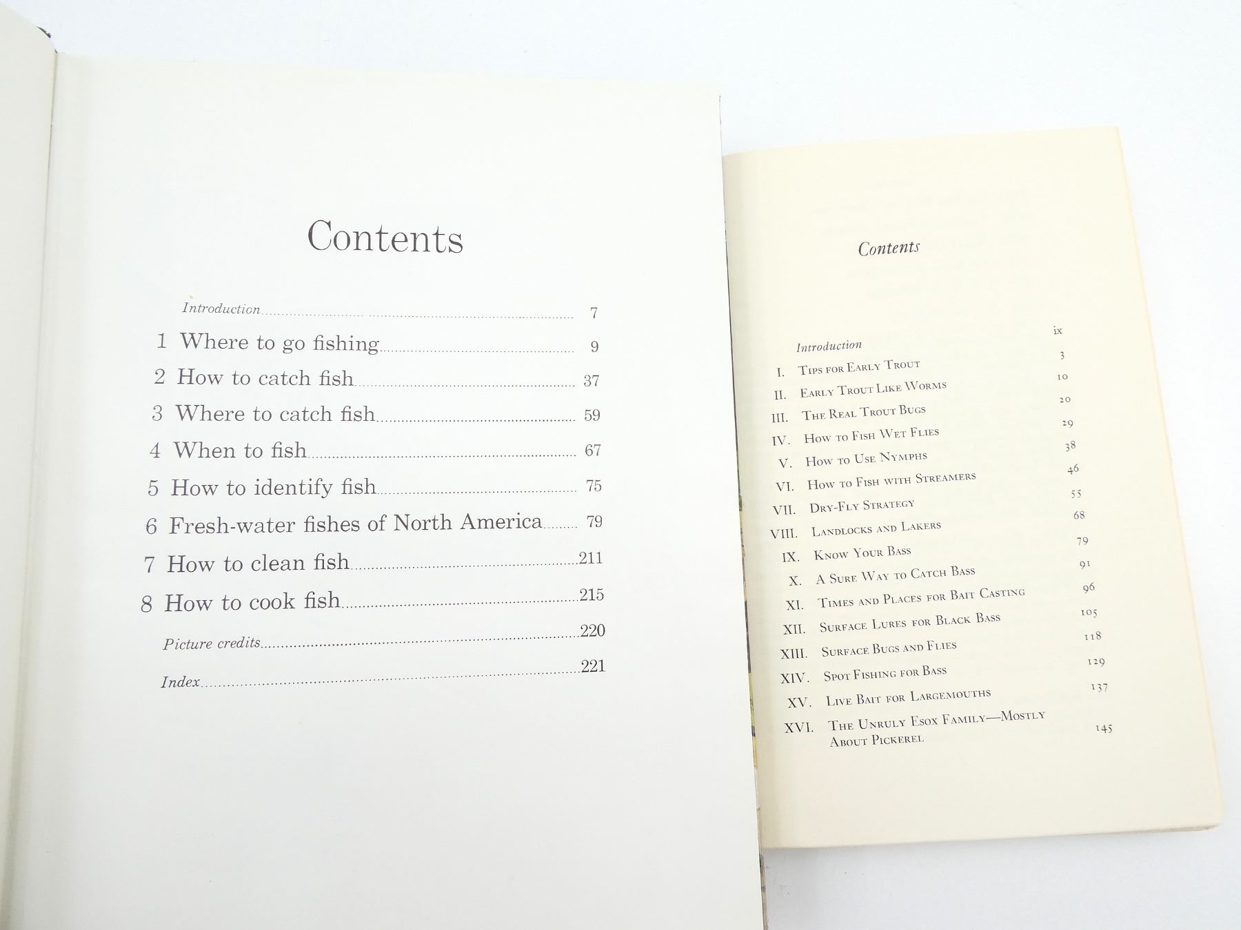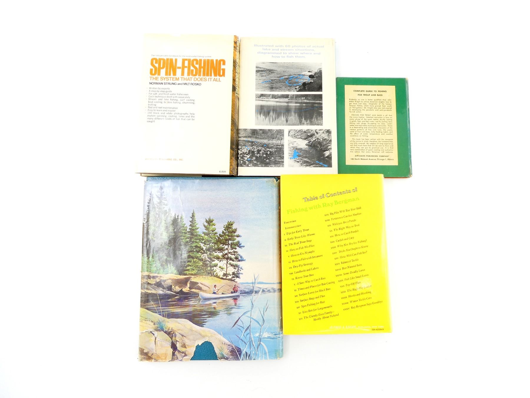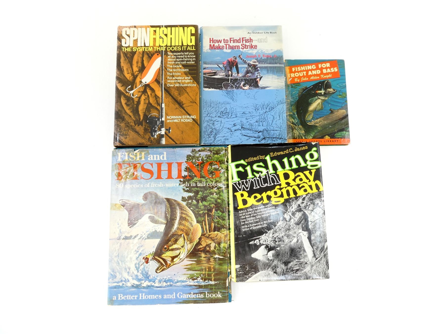 LOT INCLUDES; (1) "FISHING FOR TROUT AND BASS" BOOK BY JOHN ALDEN KNIGHT, HARD COVER, COPYRIGHT 1949, (1) "HOW TO FIND FISH - AND MAKE THEM STRIKE" BOOK BY JOSEPH D. BATES JR., HARD COVER WITH DUST COVER, SBN: 06-010241-1, (1) "SPINFISHING, THE SYSTEM THAT DOES IT ALL" BOOK BY NORMAN STRUNG & MILT ROSKO, HARD COVER WITH DUST COVER, COPYRIGHT 1973, (1) "FISHING WITH RAY BERGMAN" BOOK EDITED BY EDWARD C. JANES, HARD COVER WITH DUST COVER, COPYRIGHT 1970 & (1) "FISH AND FISHING, 80 SPECIES OF FRESH-WATER FISH IN FULL COLOR" BOOK BY MAYNARD REECE, HARD COVER WITH DUST COVER, COPYRIGHT 1963. SEE PHOTOS.