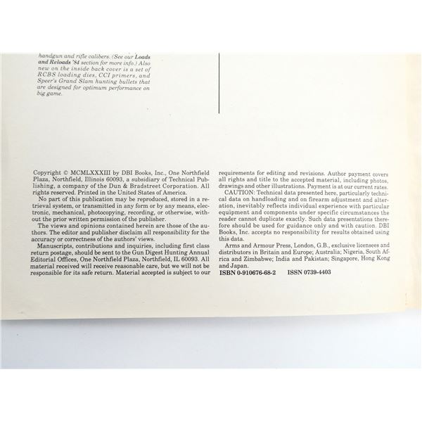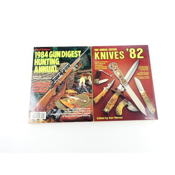 SOFT COVERS, LOT INCLUDES; (1) "KNIVES '82" BOOK BY KEN WARNER, ISBN: 0-910676-34-8 & (1) "1984 GUN DIGEST HUNTING ANNUAL" BOOK BYROBERT S.L. ANDERSON, ISBN: 0-910676-68-2. SEE PHOTOS.