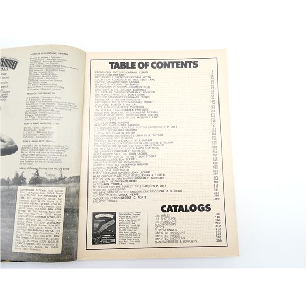 SOFT COVERS, LOT INCLUDES; (4) "SHOOTER'S BIBLE" CATALOGUES NO. 64 TO 109 EDITIONS & (3) "GUNS & AMMO" CATALOGUES FROM 1969 TO 1973, SERIES NOT COMPLETE / SOME ISSUES MISSING / MAY CONTAIN DUPLICATES. SEE PHOTOS.