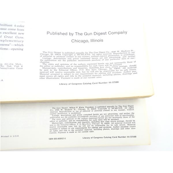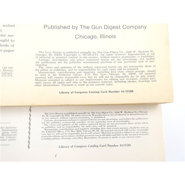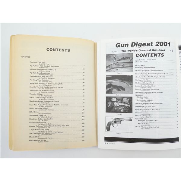 SOFT COVERS, LOT INCLUDES; (9) "GUN DIGEST" CATALOGUES FROM 1963 TO 2001, SERIES NOT COMPLETE / SOME ISSUES MISSING / MAY CONTAIN DUPLICATES. SEE PHOTOS.