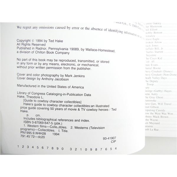 "HAKE'S GUIDE TO COWBOY CHARACTER COLLECTIBLES" BOOK