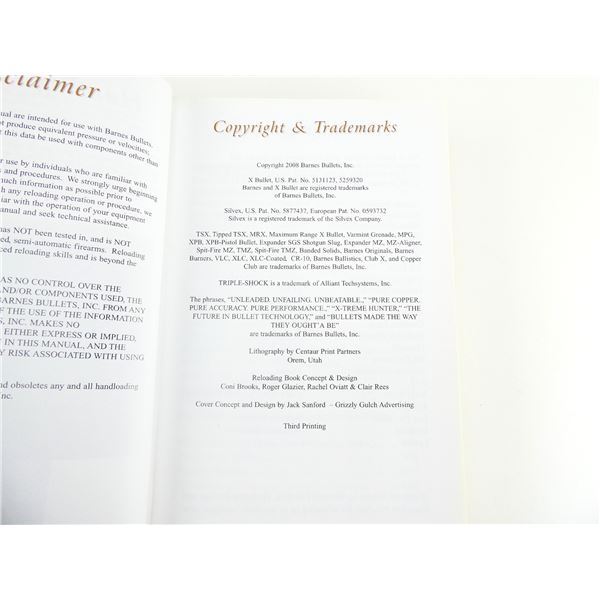 (1) PUBLISHED BY BARNES BULLETS INC., COPYRIGHT 2008. SEE PHOTOS.