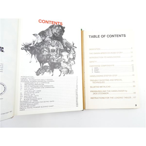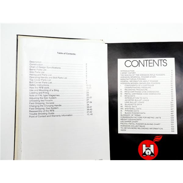 LOT INCLUDES; (1) "KEL-TEC RFB SAFETY, INSTRUCTION, AND PARTS MANUAL" MANUAL PUBLISHED BY KEL-TEC CNC INDUSTRIES INC., SOFT COVER, (1) "SPEER RELOADING MANUAL NUMBER TEN FOR RIFLE AND PISTOL" BOOK PUBLISHED BY OMARK INDUSTRIES INC., HARD COVER, COPYRIGHT 1980, (1) "HODGDON MODERN SMOKELESS POWDERS DATA MANUAL NO. 24" BOOK PUBLISHED BY HODGDON POWDER CO. INC., COPYRIGHT 1983 & (1) HODGDON POWDER DATA MANUAL TWENTY-FIFTH EDITION" BOOK PUBLISHED BY HODGDON POWDER CO. INC., COPYRIGHT 1986. SEE PHOTOS.