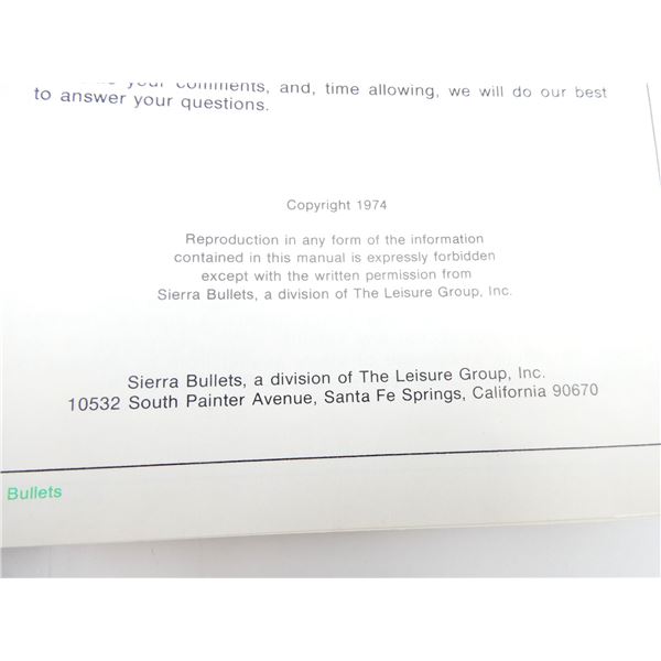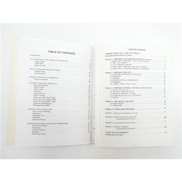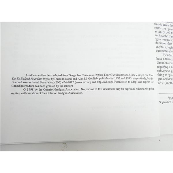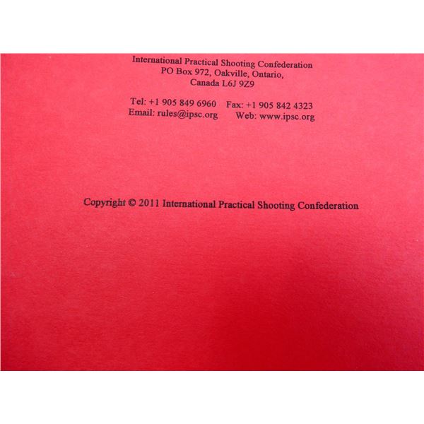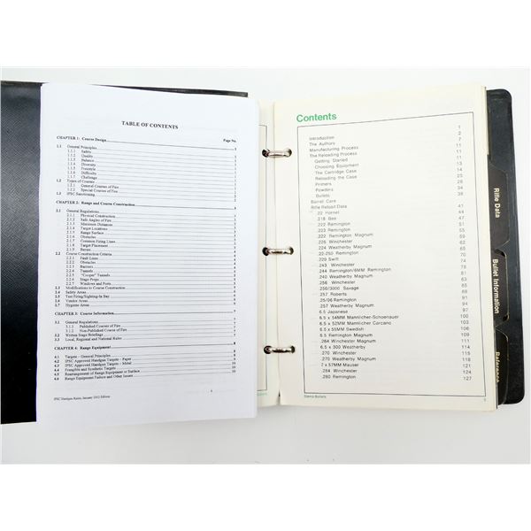 LOT INCLUDES; (1) "SIERRA BULLETS RELOADING MANUAL" PUBLISHED BY THE LEISURE GROUP INC., COPYRIGHT 1971, (1) "INTERNATIONAL PRACTICAL SHOOTING CONFEDERATION HANDGUN COMPETITION RULES, JANUARY 2012 EDITION" BOOK PUBLISHED BY INTERNATIONAL PRACTICAL SHOOTING CONFEDERATION, WITH ACCOMPANYING HANDOUT, COPYRIGHT 2011, (1) "OBSERVATIONS ON A ONE-WAY STREET: THE CANADIAN FIREARM CONTROL DEBATE" BOOK PRESENTED BY THE SHOOTING ORGANIZATIONS OF CANADA, COPYRIGHT 1994, (1) "PRO-GUN ACTIVISM FOR THE POLITICALLY CHALLENGED, THINGS YOU CAN DO TO PROTECT YOUR STUFF" PREPARED BY THE ONTARIO HANDGUN ASSOCIATION, COPYRIGHT 1998 & (1) "HOGUE INCORPORATED CONFIDENTIAL DEALER PRICES" PAMPHLET. SEE PHOTOS.