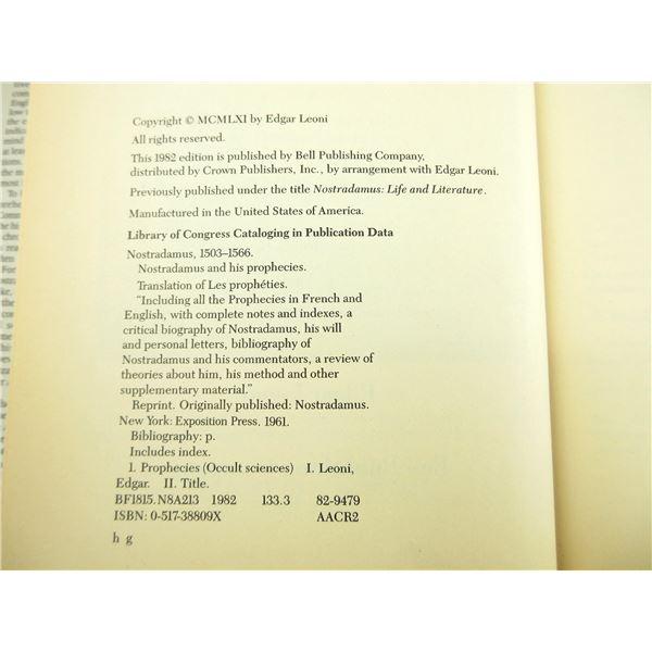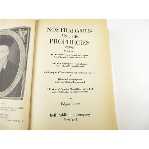 LOT INCLUDES; (1) "NOSTRADAMUS AND HIS PROPHECIES" BOOK BY EDGAR LEONI, HARD COVER WITH DUST COVER, ISBN: 0-517-38809X, (1) "AN OPEN HEART, THE DALAI LAMA, PRACTICING COMPASSION IN EVERYDAY LIFE" BOOK EDITED BY NICHOLAS VREELAND, HARD COVER WITH DUST COVER, ISBN: 0-316-98979-7 & (1) "MYSTIC PLACES, MYSTERIES OF THE UNKNOWN" BOOK BY THE EDITORS OF TIME-LIFE BOOKS, ISBN: 0-8094-6312-1. SEE PHOTOS.