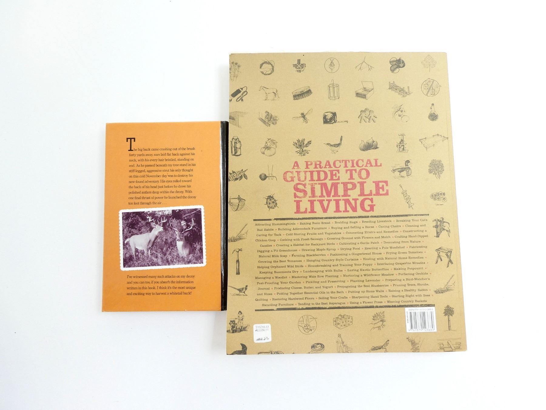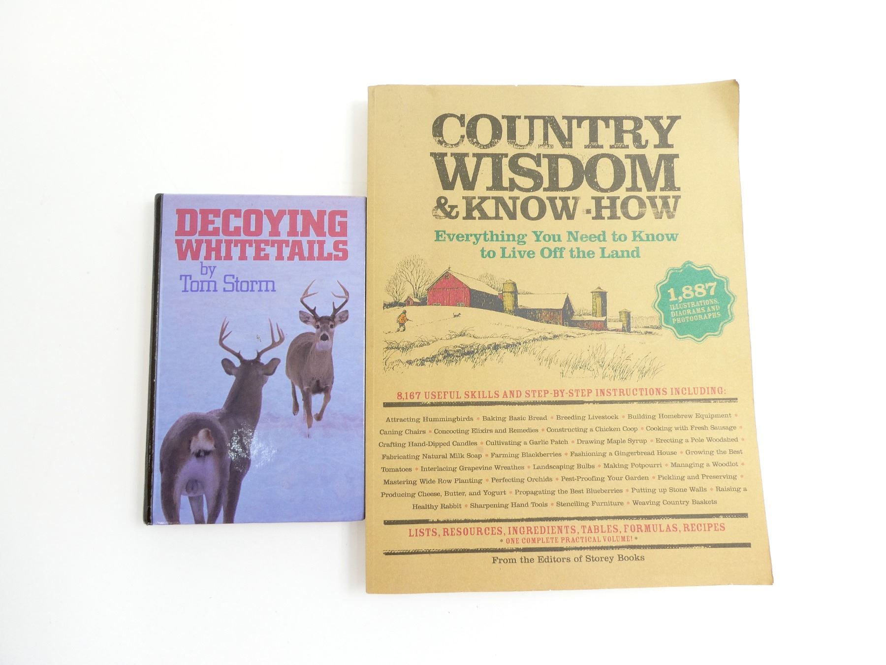 LOT INCLUDES; (1) "DECOYING WHITETAILS" BOOK BY TOM STORM, HARD COVER, COPYRIGHT 1991 & (1) "COUNTRY WISDOM & KNOW-HOW, EVERYTHING YOU NEED TO KNOW TO LIVE OFF THE LAND" BOOK PUBLISHED BY STOREY PUBLISHING LLC, SOFT COVER, ISBN: 978-1-57912-368-0. SEE PHOTOS.