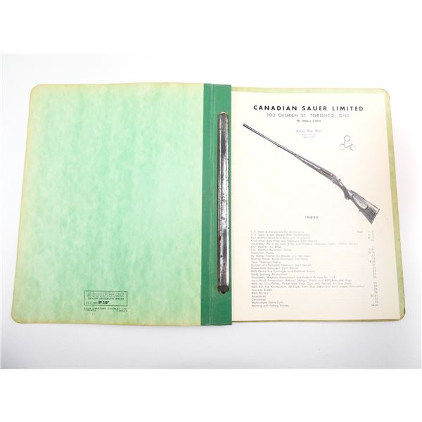 LOT INCLUDES; (1) BY CANADIAN SAUER LIMITED, SOFT COVER BINDER, WITH PRICE LIST DATED 1961 & (1) "ALL-CANADIAN GUN SALES INC." CATALOGUE, SOFT COVER, SEE PHOTOS.