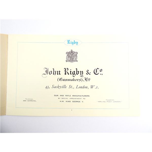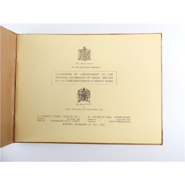 SOFT COVERS, LOT INCLUDES; (1) "RIGBY DOUBLE RIFLES" CATALOGUE BY GUN AND RIFLE MANUFACTURERS, DATED 1932 & (1) "WESTLEY RICHARDS MODERN SPORTING RIFLES AND CARTRIDGES" CATALOGUE BY WESTLEY RICHARDS & CO. LTD. SEE PHOTOS.