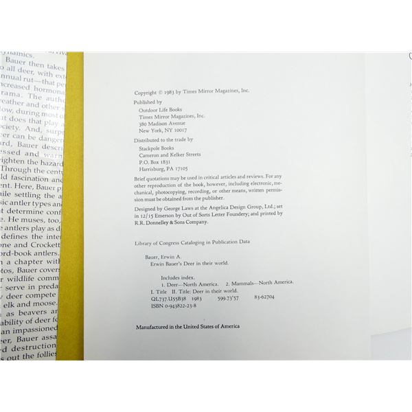 LOT INCLUDES; (1) "HUNTER'S GUIDE" PUBLISHED BY MINISTRY OF NATURAL RESOURCES, SOFT COVER, ISBN: 0-7729-4546-2 & (1) "ERWIN BAUER'S DEER IN THEIR WORLD" BOOK BY ERWIN BAUER, HARD COVER WITH DUST COVER, ISBN: 0-943822-23-8. SEE PHOTOS.